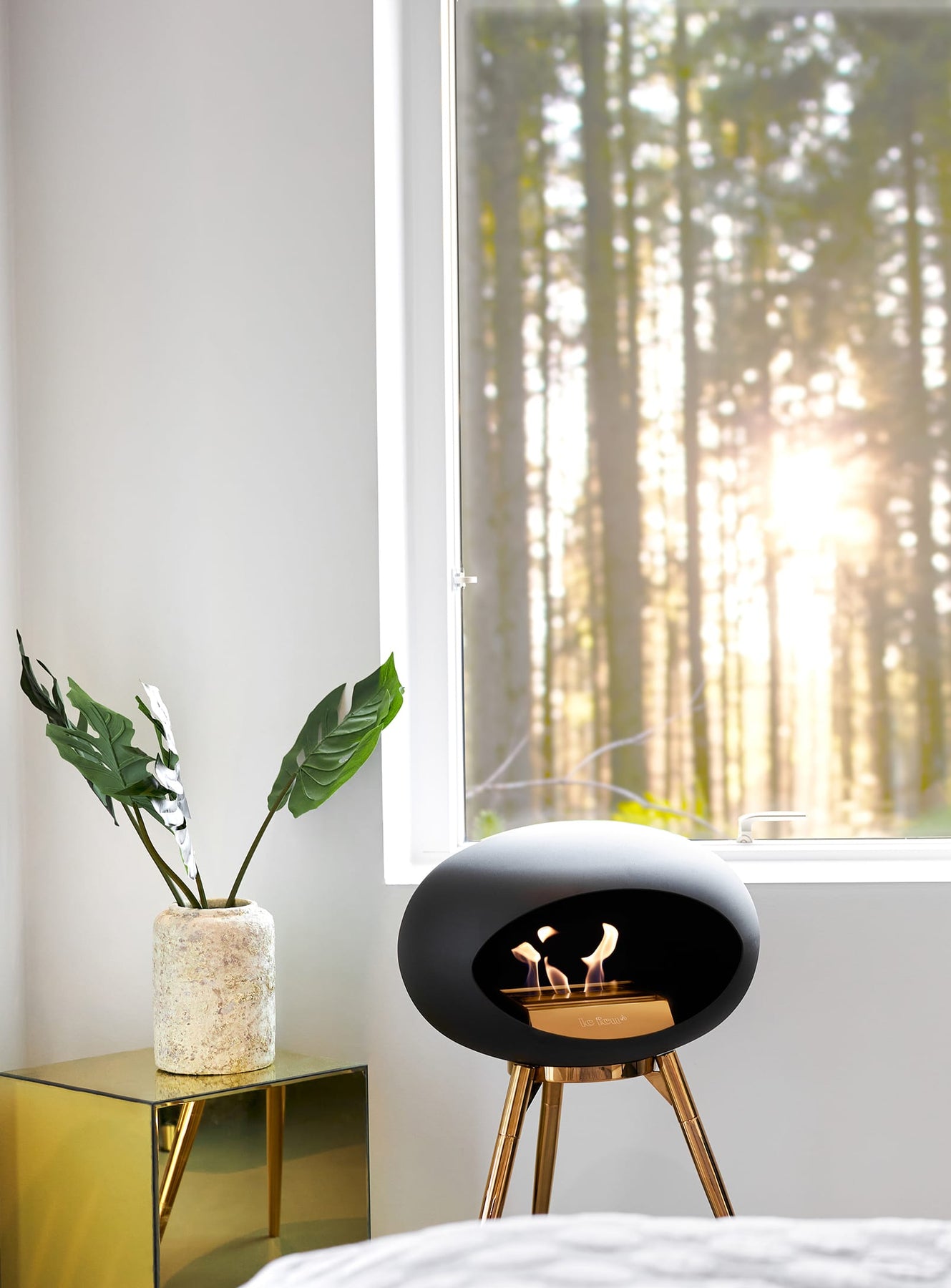 Foyer Le Feu Ground High Dome : élégance nordique et feu bioéthanol.