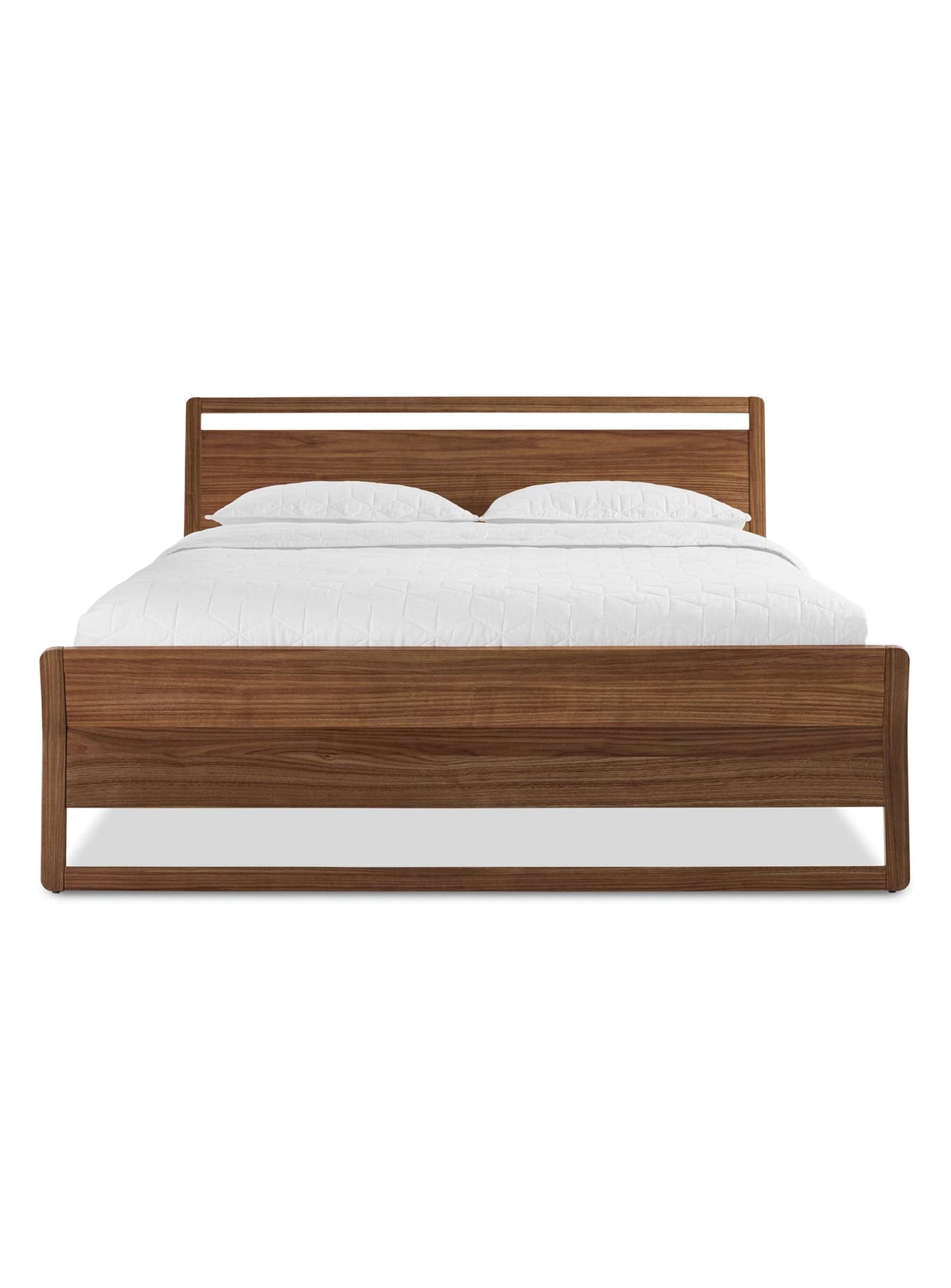Sobriété et authenticité se rencontrent dans le lit Woodrow de Blu Dot. Noyer.
