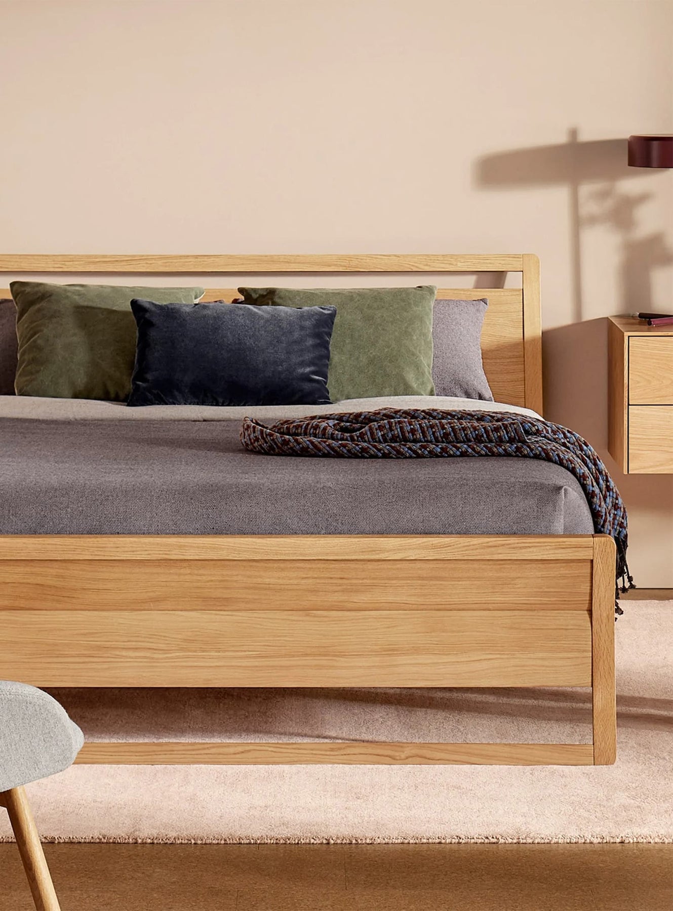 With its solid yet airy design and look, the Woodrow bed is much more than just a piece of furniture: it's a centerpiece that combines elegance and functionality, designed to last and enhance your sleeping space.