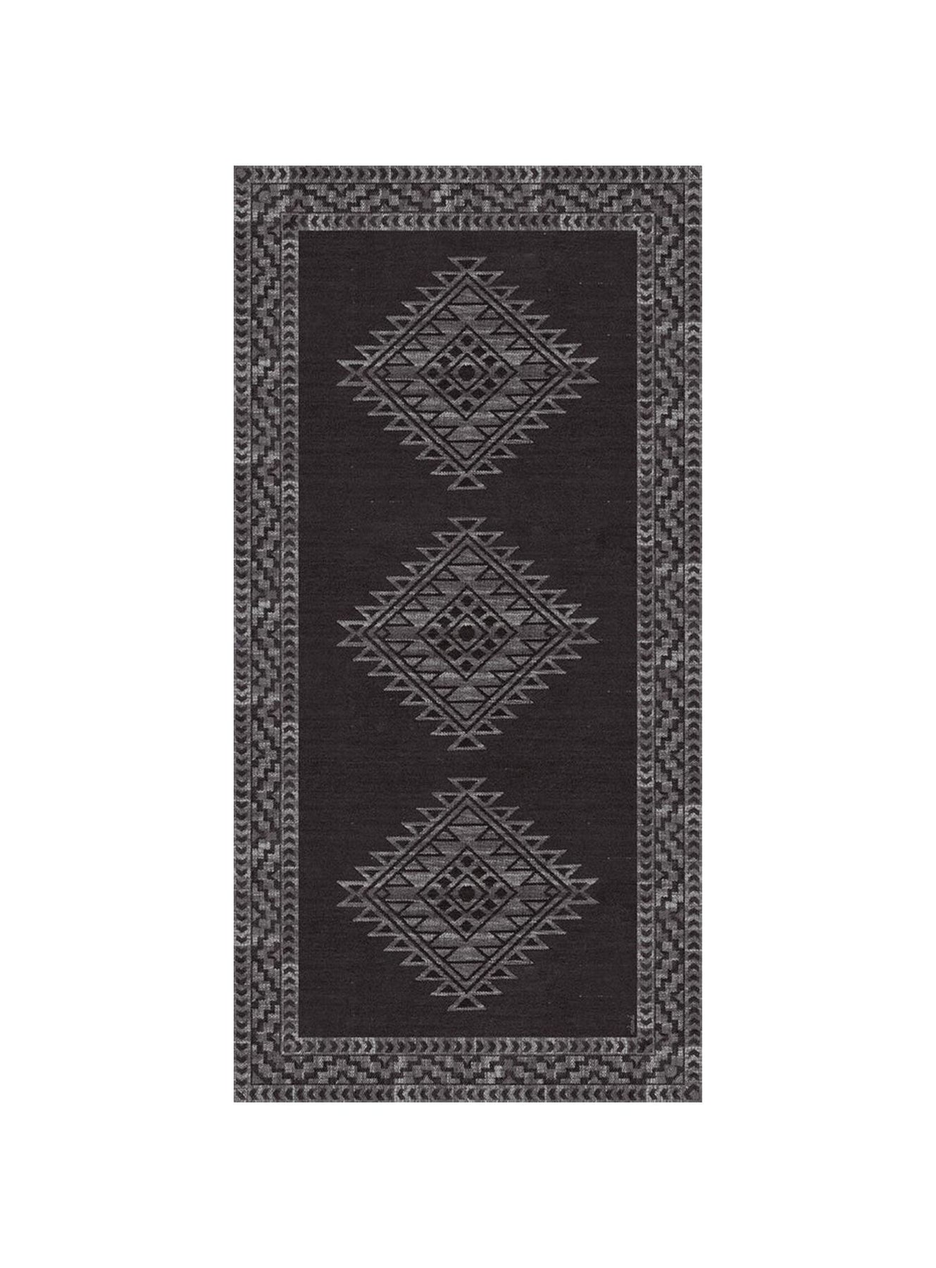 Tapis Cusco d'Adama Alma, robuste et parfait pour un usage intérieur quotidien. noir