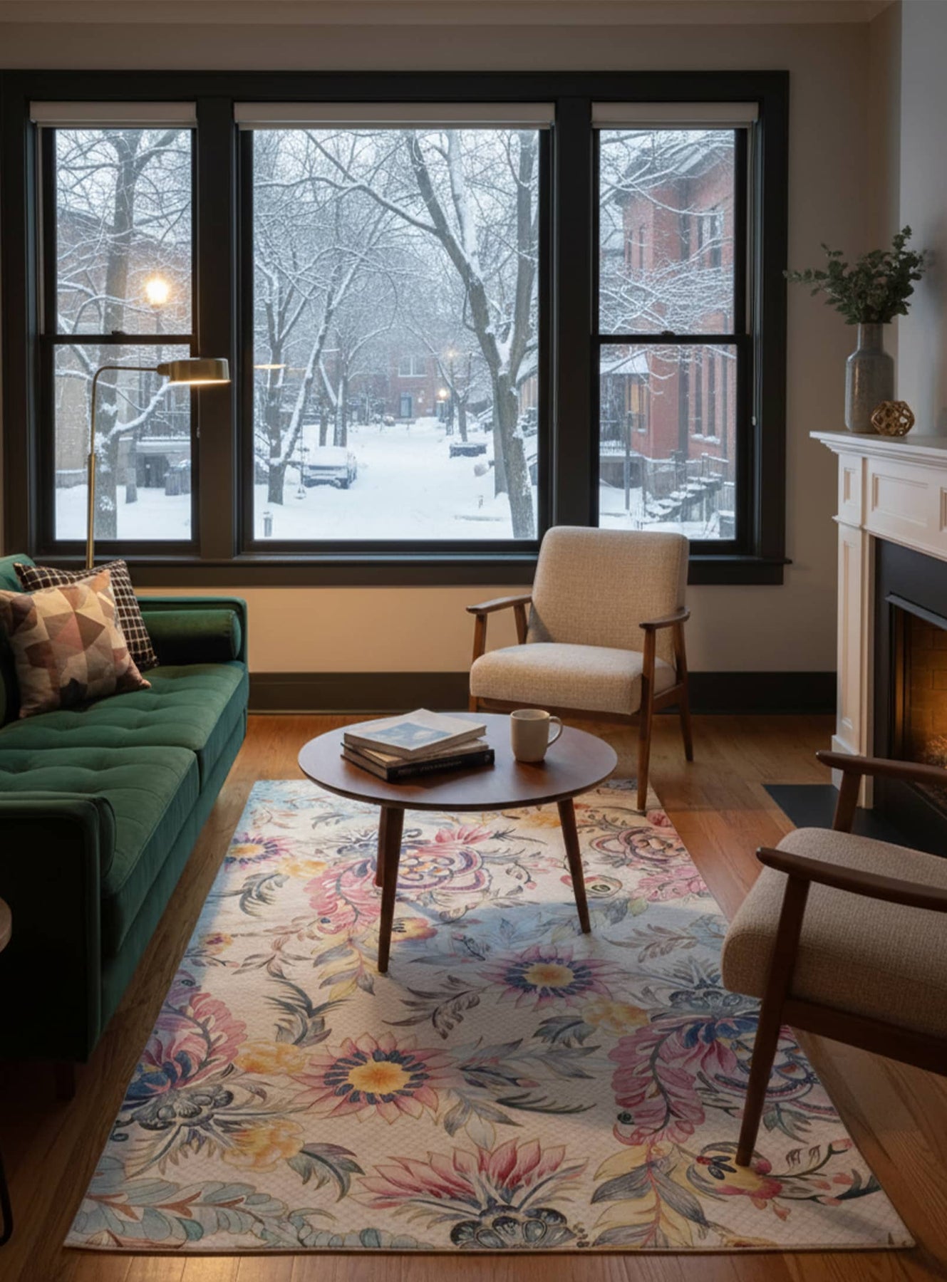 - No pile or fibers to trap stains or spills like traditional rugs.