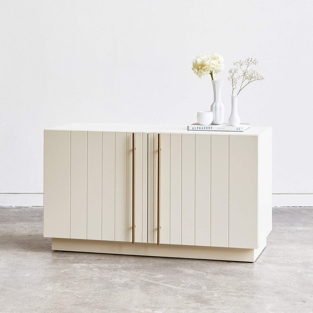 Elora storage furniture combines the charm of classic storage with absolute modernity. Every detail, from the elegant grooves to the satin finish and brass handles, lends these pieces a sophisticated allure that restores storage furniture to its former glory. Elora embodies a perfect balance between timeless aesthetics and contemporary functionality.