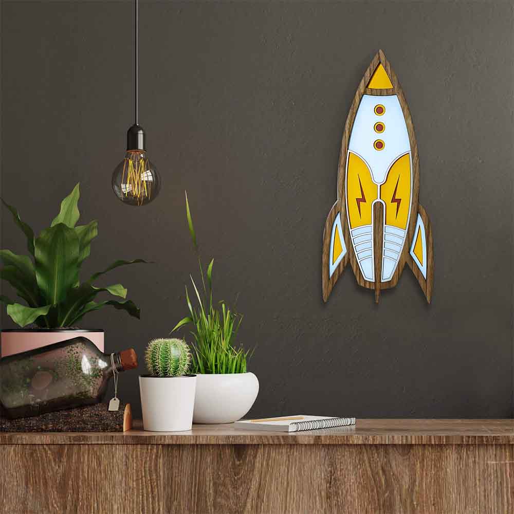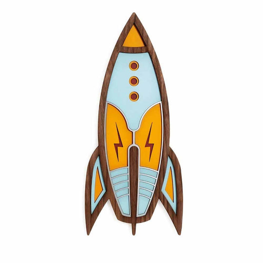 Imagine this rocket sitting proudly on a shelf in your living room, captivating all eyes with its majestic appearance and retro charm. Whether you are passionate about science fiction or simply a fan of original design, "My Spaceship" will add a touch of sparkle and mystery to your living space, transporting you to distant horizons and imaginary worlds.