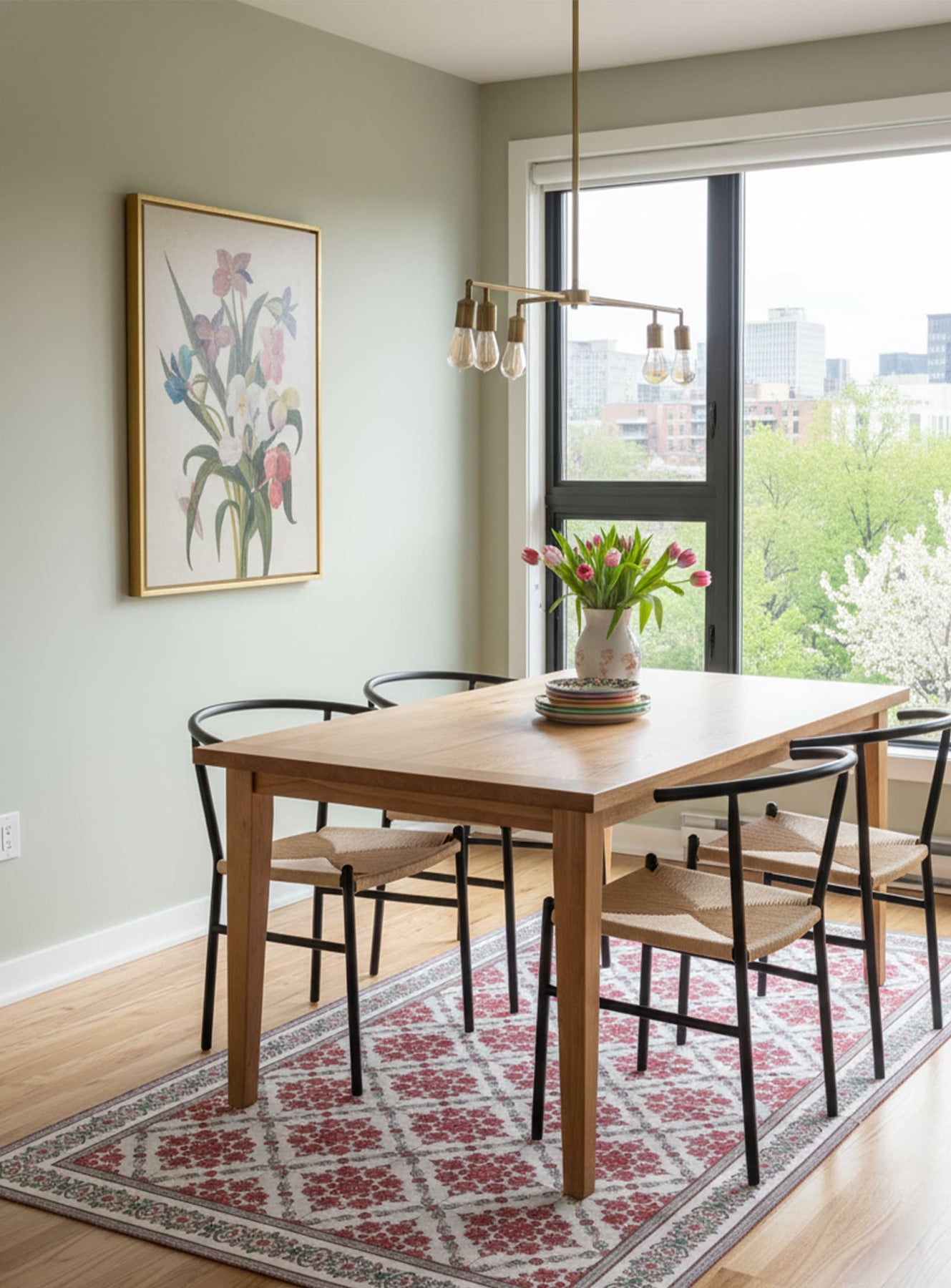 • No pile or fibers to trap stains or spills like traditional rugs.
