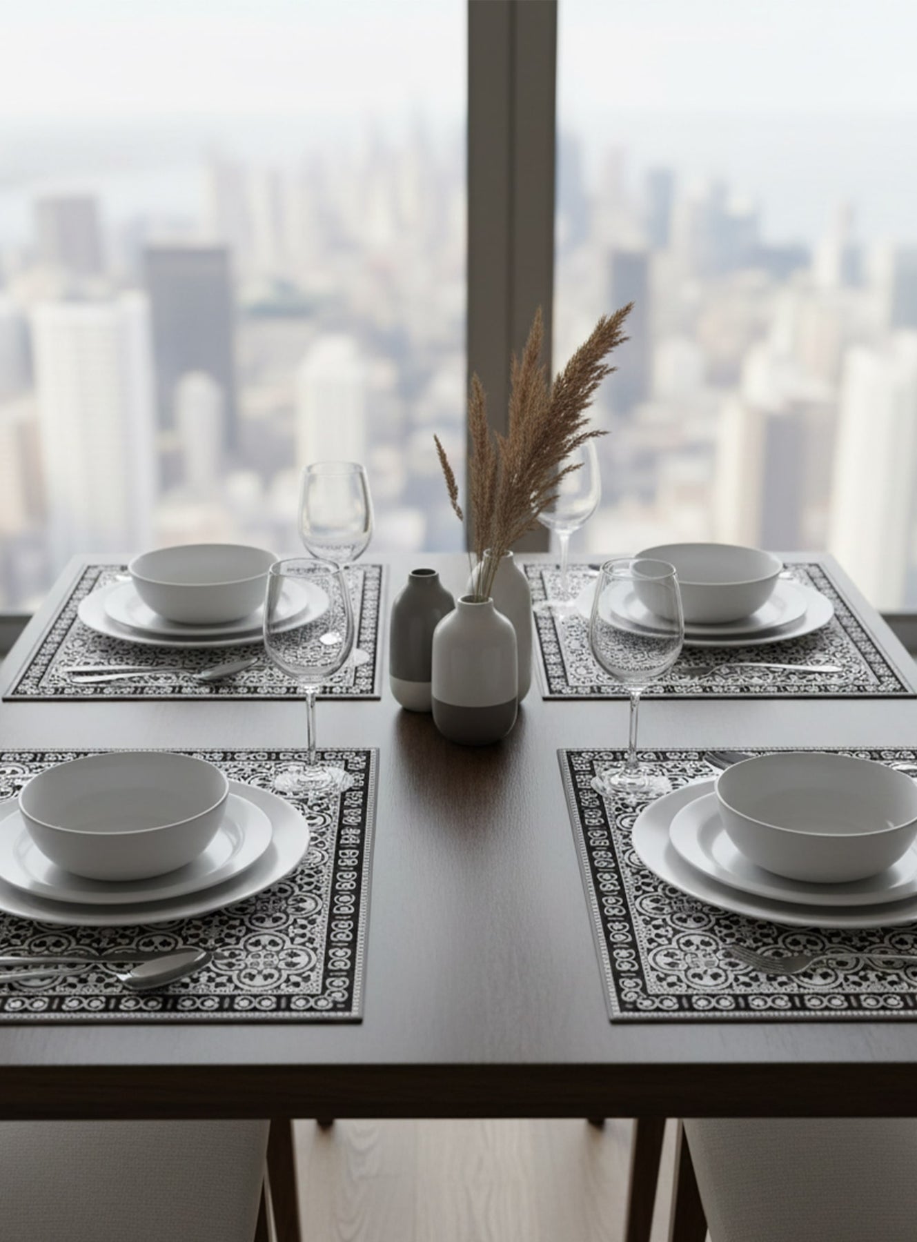 Napperons en vinyle Adama Alma Classiques, un choix chic pour sublimer vos repas. tuxedo noir