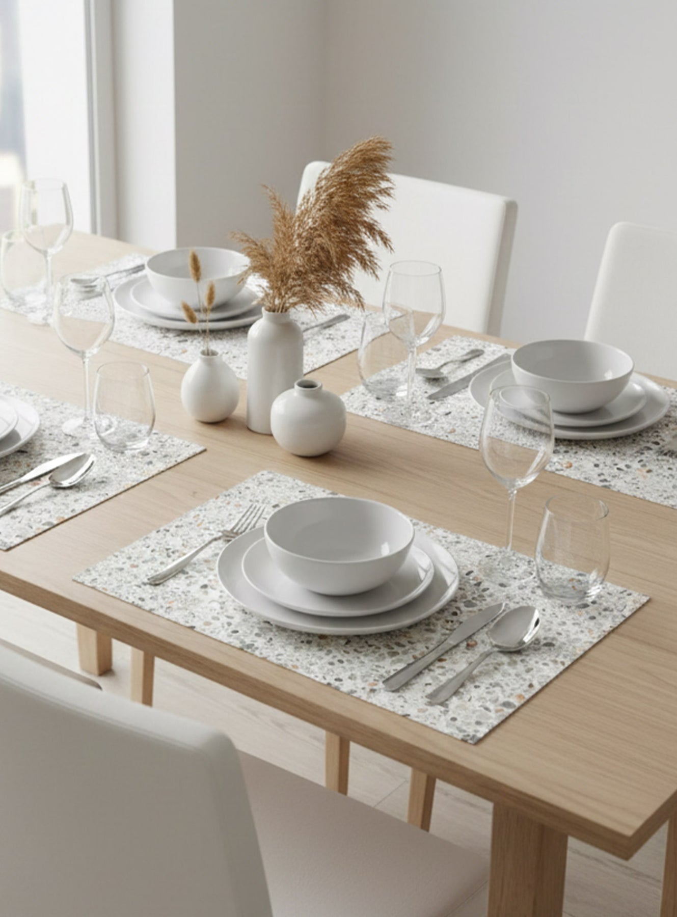 Adama Alma 's soft vinyl placemats are an invitation to boldness and style for your guest table. These classics bring a unique touch to your dining space, combining aesthetics and functionality.
