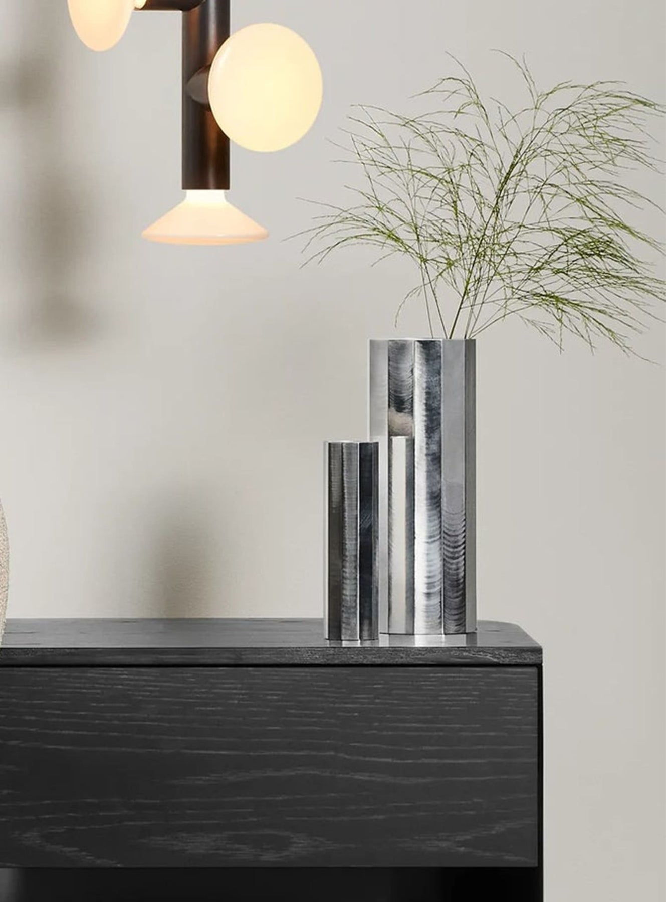 Le vase Gussy de Blu Dot, en aluminium massif, illumine votre intérieur avec élégance.