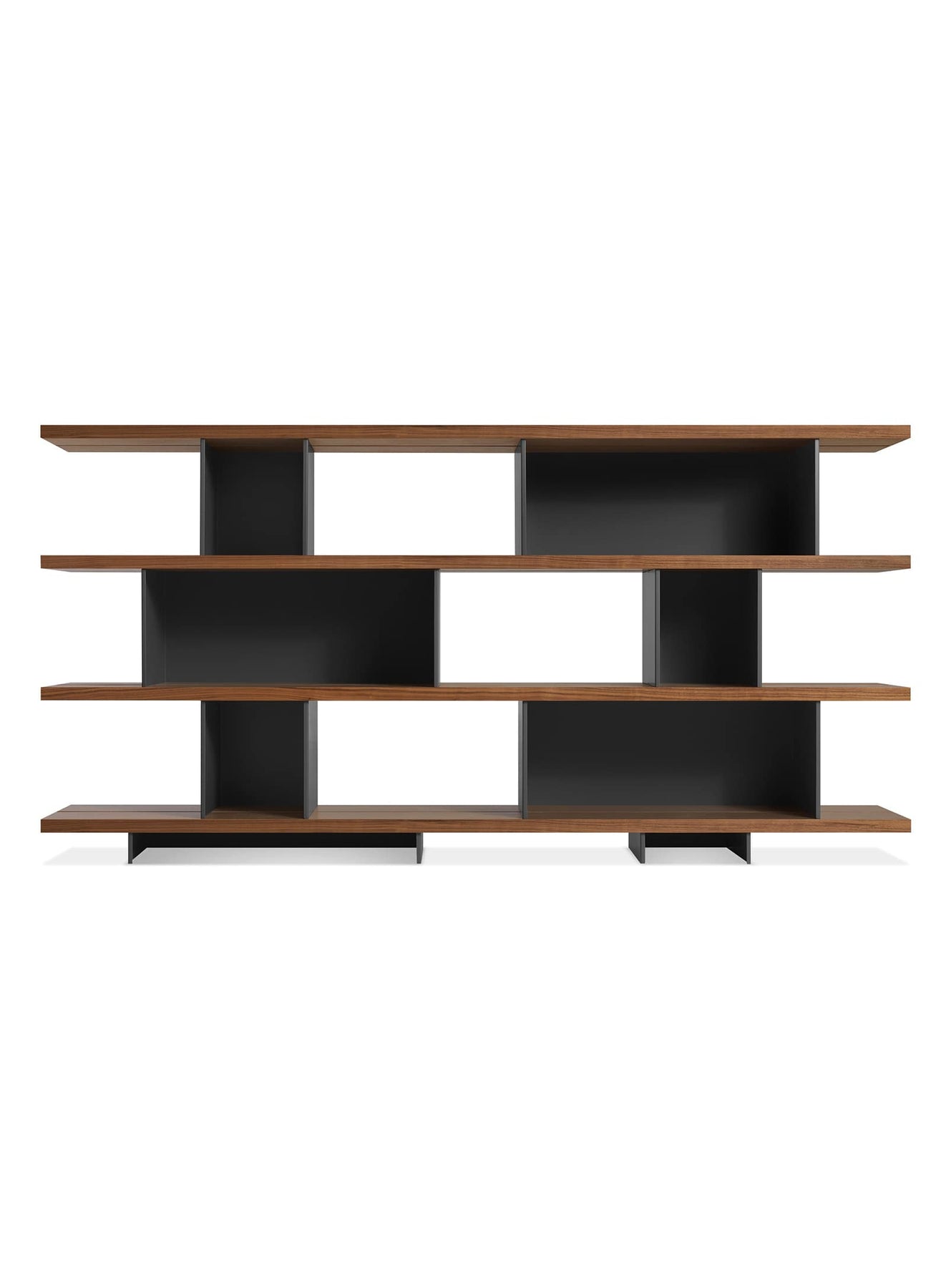 Bibliothèque Happy Day 4 de Blu Dot, design sculptural et fonctionnel. noir, noyer.