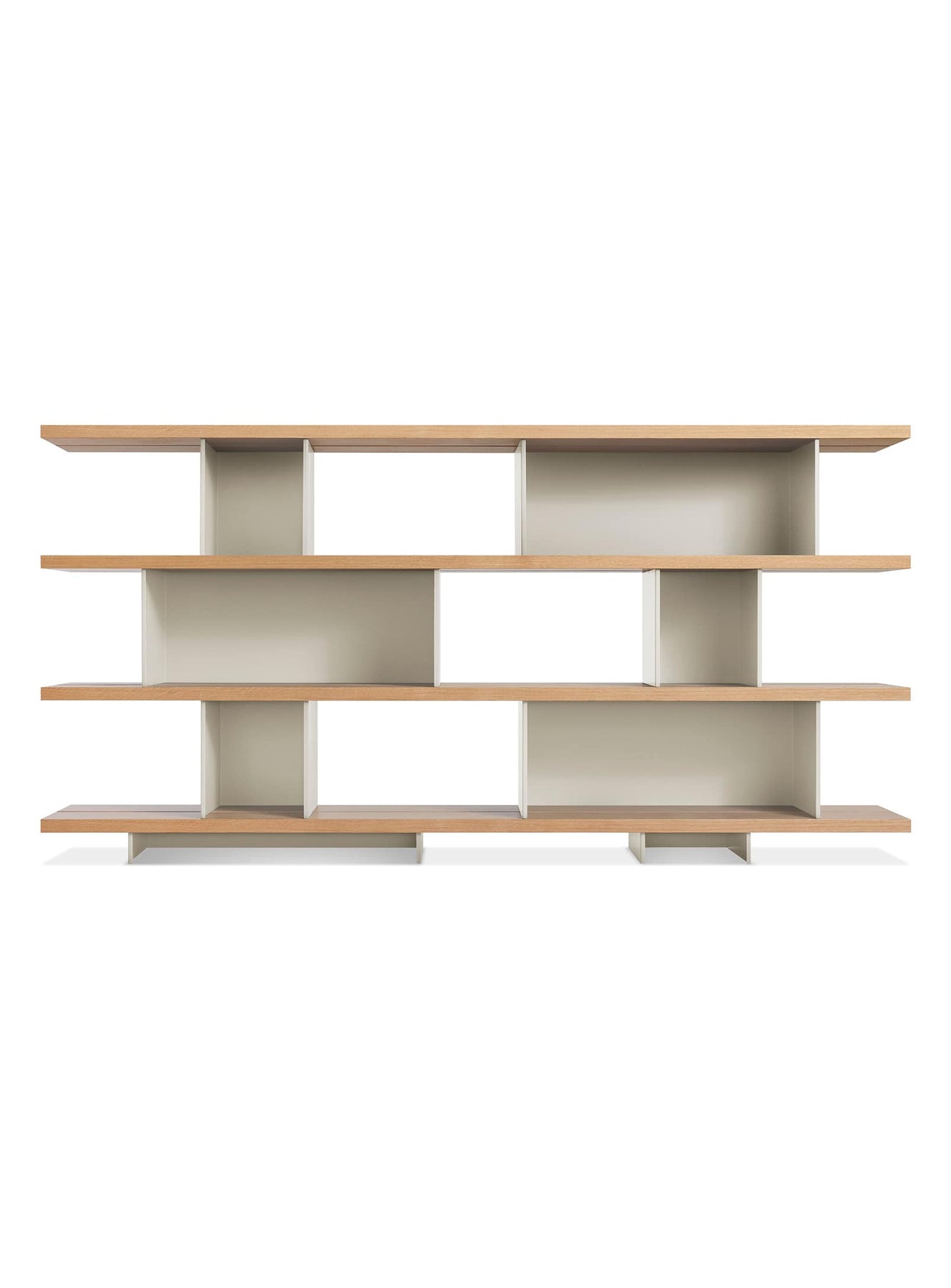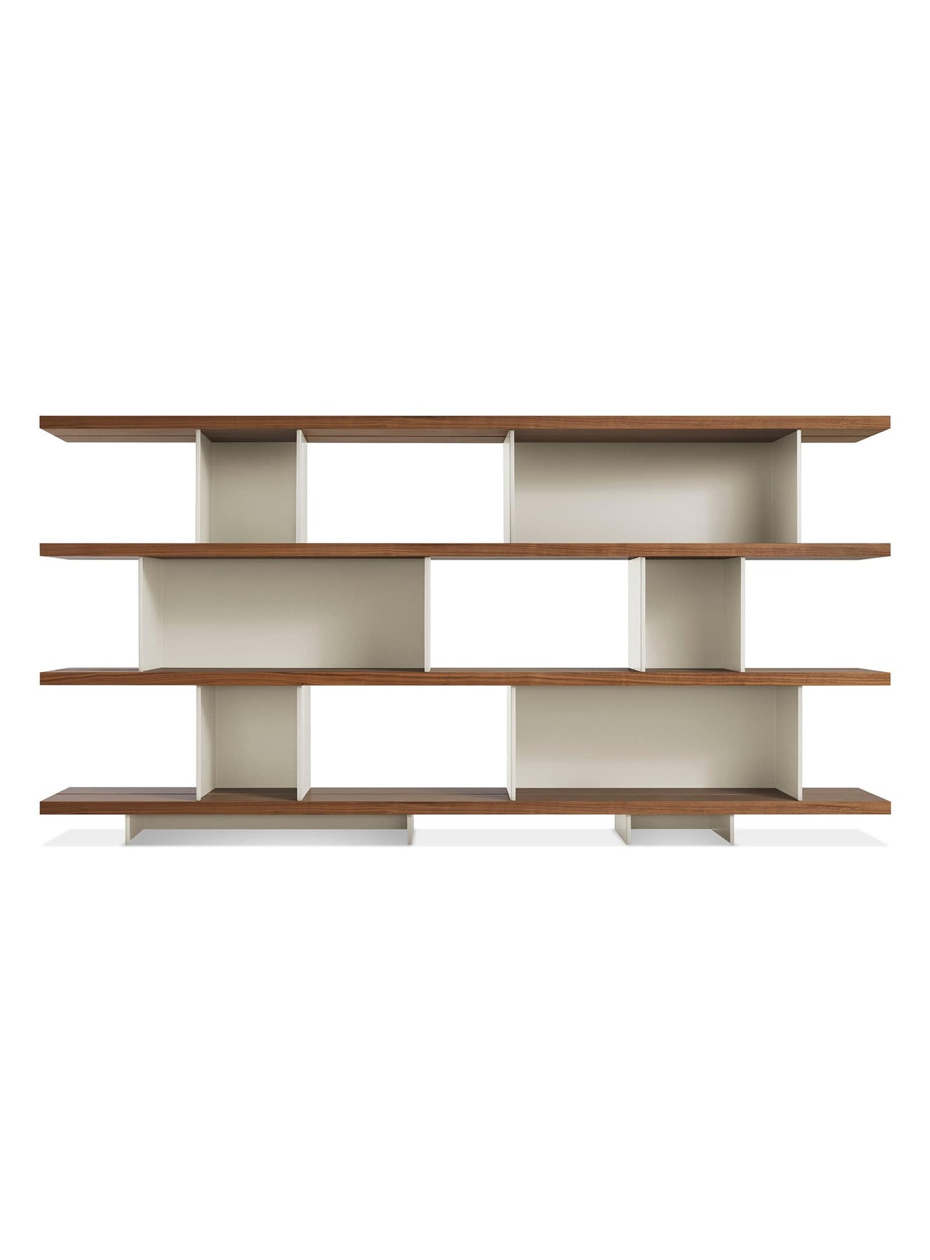 Happy Day 4, bibliothèque graphique et équilibrée par Blu Dot. gris, noyer