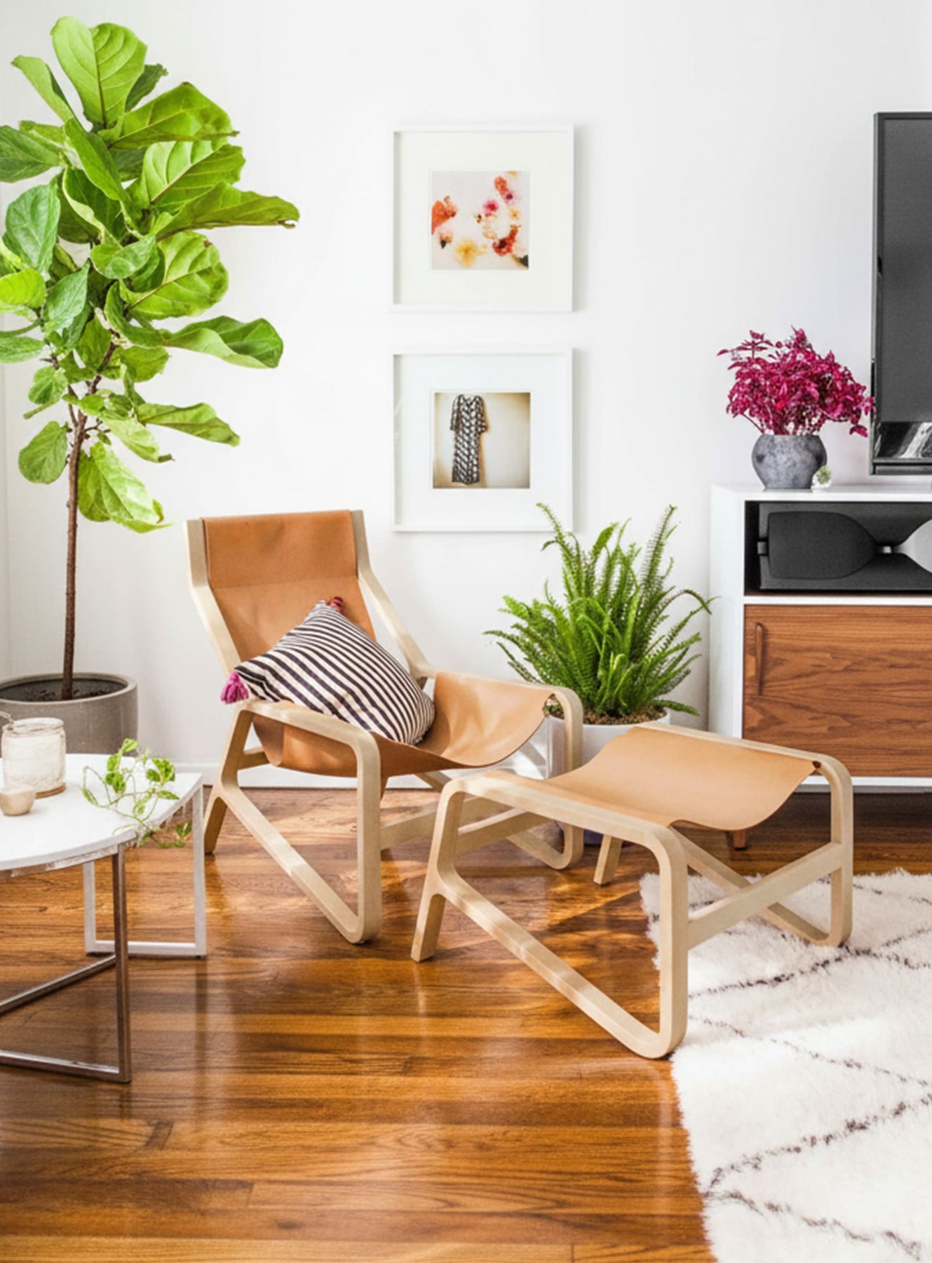 Toro de Blu Dot : chaise lounge artisanale, sobre et résolument élégante. camel