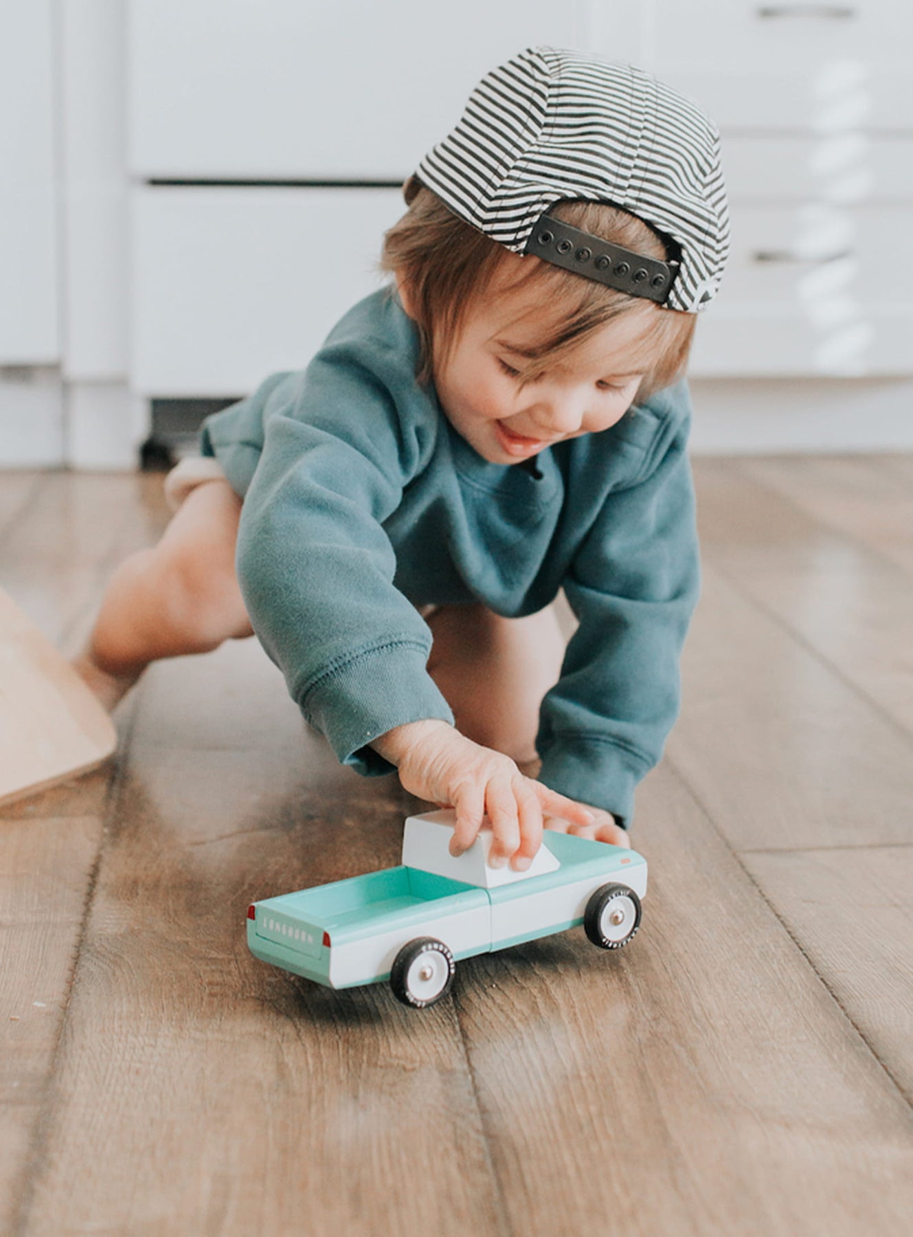 Découvrez Candylab, des voitures en bois au design rétro, conçues pour jouer ou collectionner, de la voiture de course au bus scolaire.