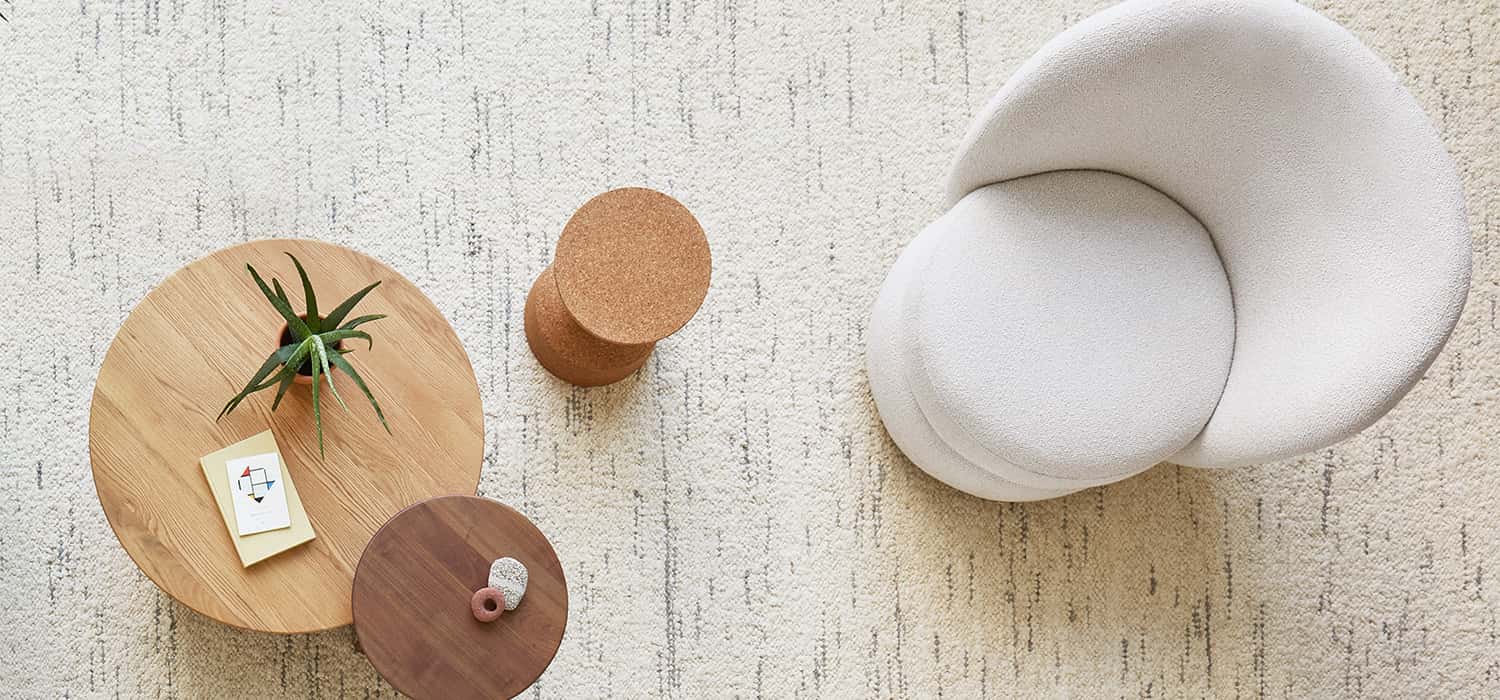 If you're looking for a rug that combines understated elegance with artisanal quality, the Echo rug by Gus* Modern will meet your expectations. It subtly evokes a play of delicate patterns, while embodying high-end craftsmanship that's both visible and tactile. Each piece is handwoven, harmoniously blending 60% wool and 40% jute, two natural materials chosen for their durability, comfort, and rich texture.
