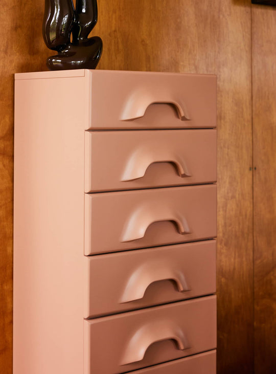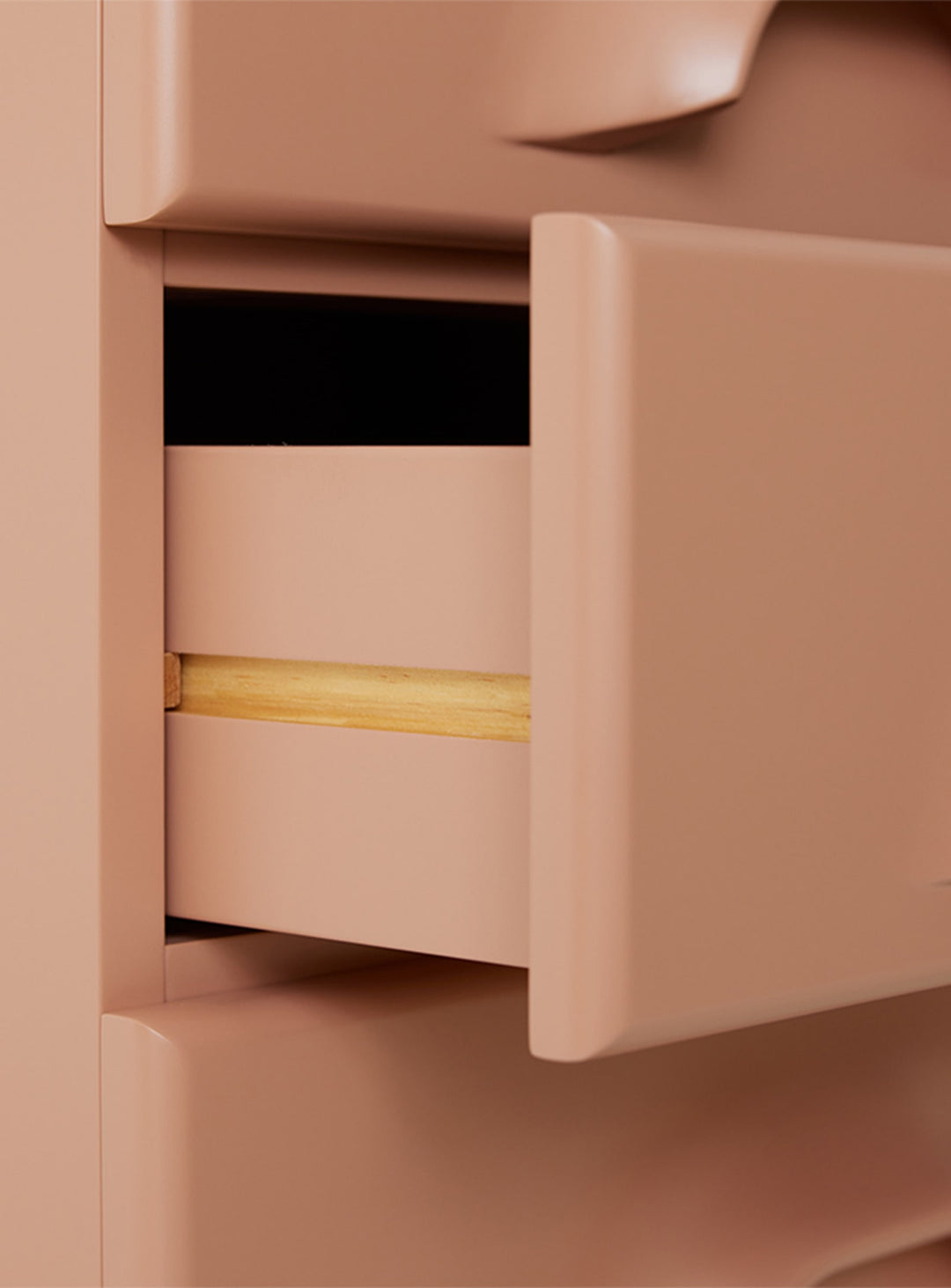 Commode blush 7 tiroirs de HKliving : rangement généreux et teinte rosée pleine de douceur.