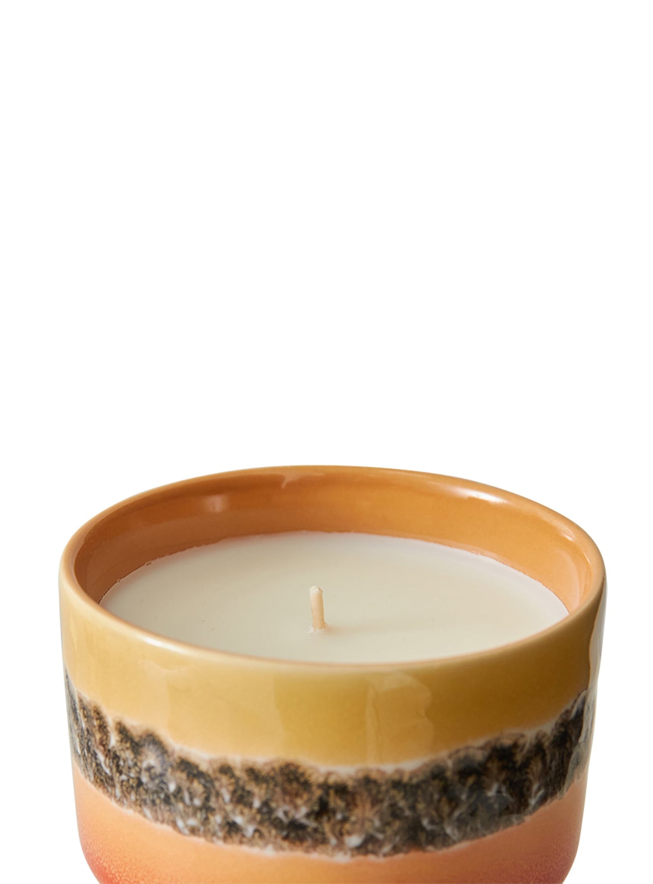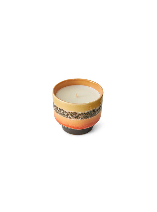 Bougie parfumée Tulum de HKliving : senteurs fraîches et sucrées dans un pot céramique au style 70s.