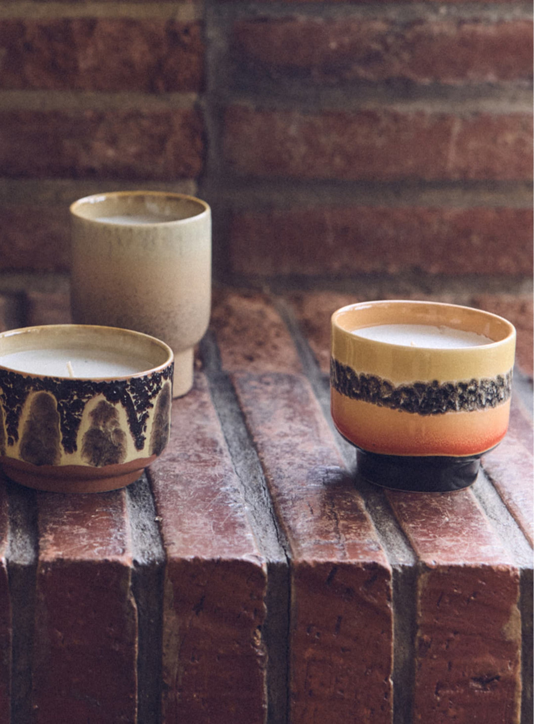Bougie Tulum de HKliving : un parfum d’été permanent dans un écrin rétro en céramique.