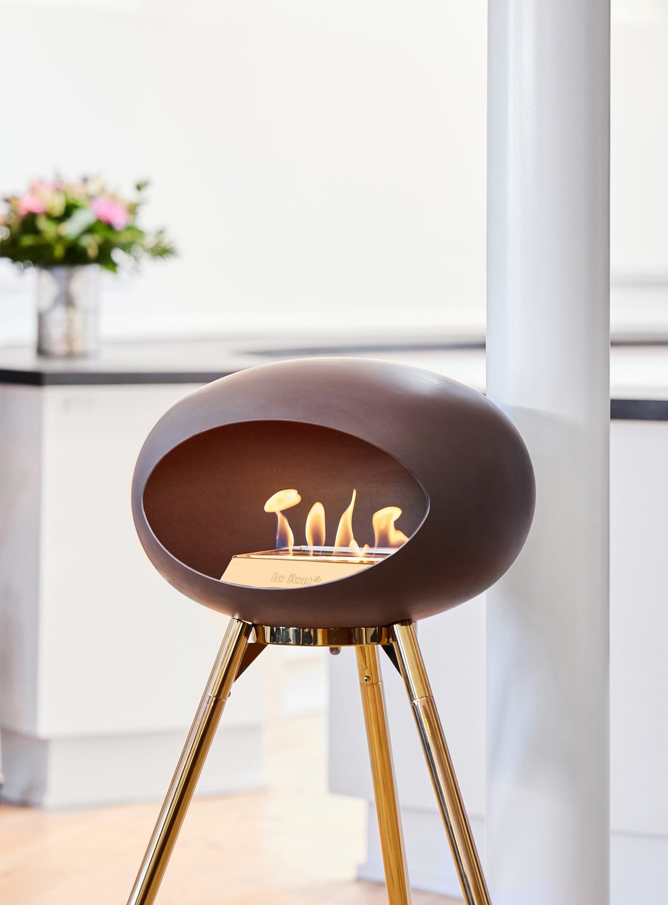 Foyer Ground High Dome Mocca de Le Feu : feu bioéthanol et raffinement.