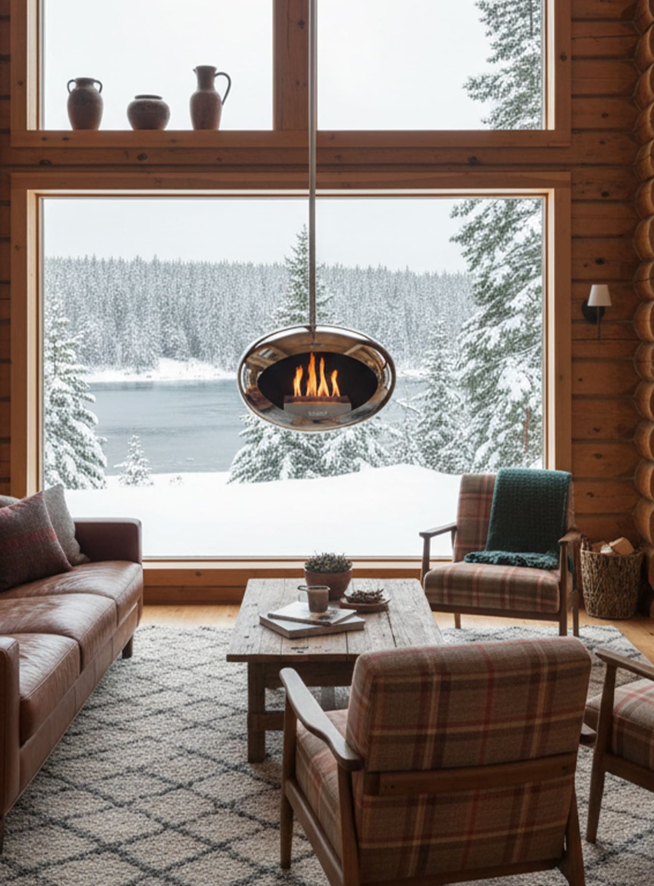 Designed for interiors where every inch counts, this suspended model completely frees up floor space. With no hearth, no base, and no need for clearance, it seamlessly integrates into sleek decors or complex configurations. Whether you live in a high-rise condo, an elegant townhouse, or a contemporary chalet, the Sky Dome adapts to your environment without compromise. Its bioethanol technology provides real heat, without smoke, soot, or ventilation, for simple, clean use that respects your interior.