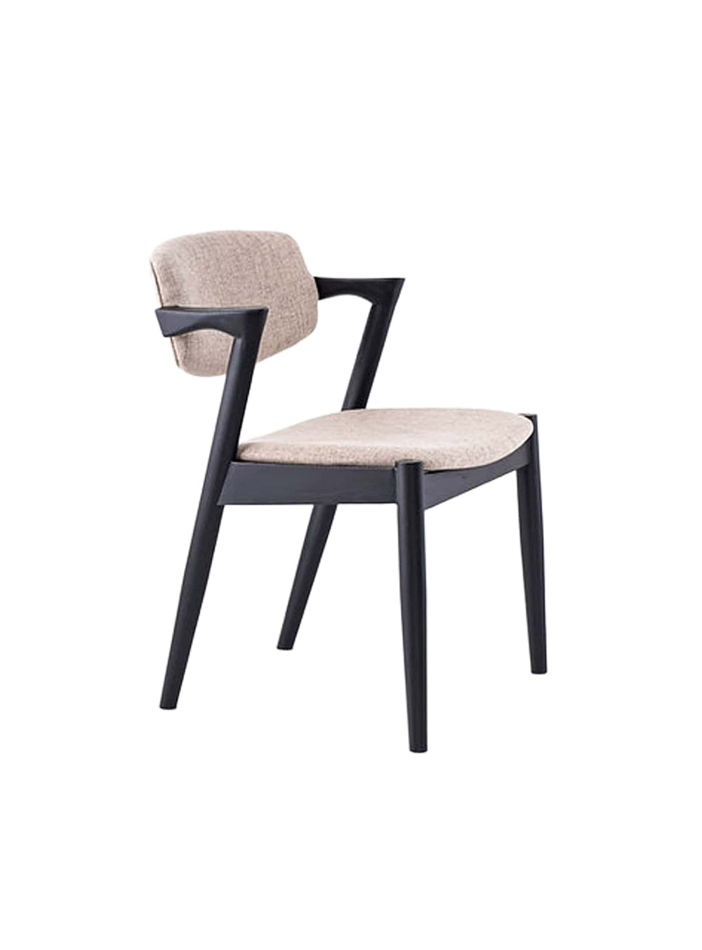 The generously padded seat and backrest offer comfort while maintaining a clean silhouette. The gently curved backrest contours to the back, providing excellent support, while the angled armrests add a graphic, structured touch to the design. Designed to complement meals or serve as an occasional seat, the No. 42 chair combines lasting comfort with understated elegance.