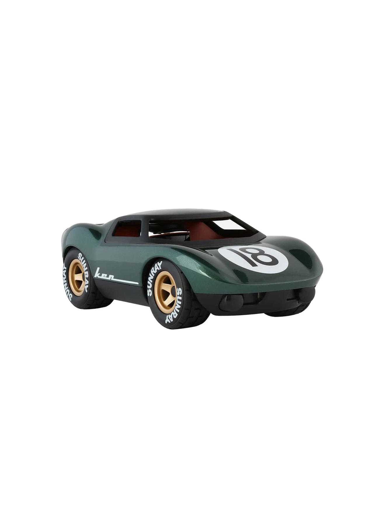 Jouet Ken de Playforever : voiture inspirée de l’âge d’or du sport auto. vert.