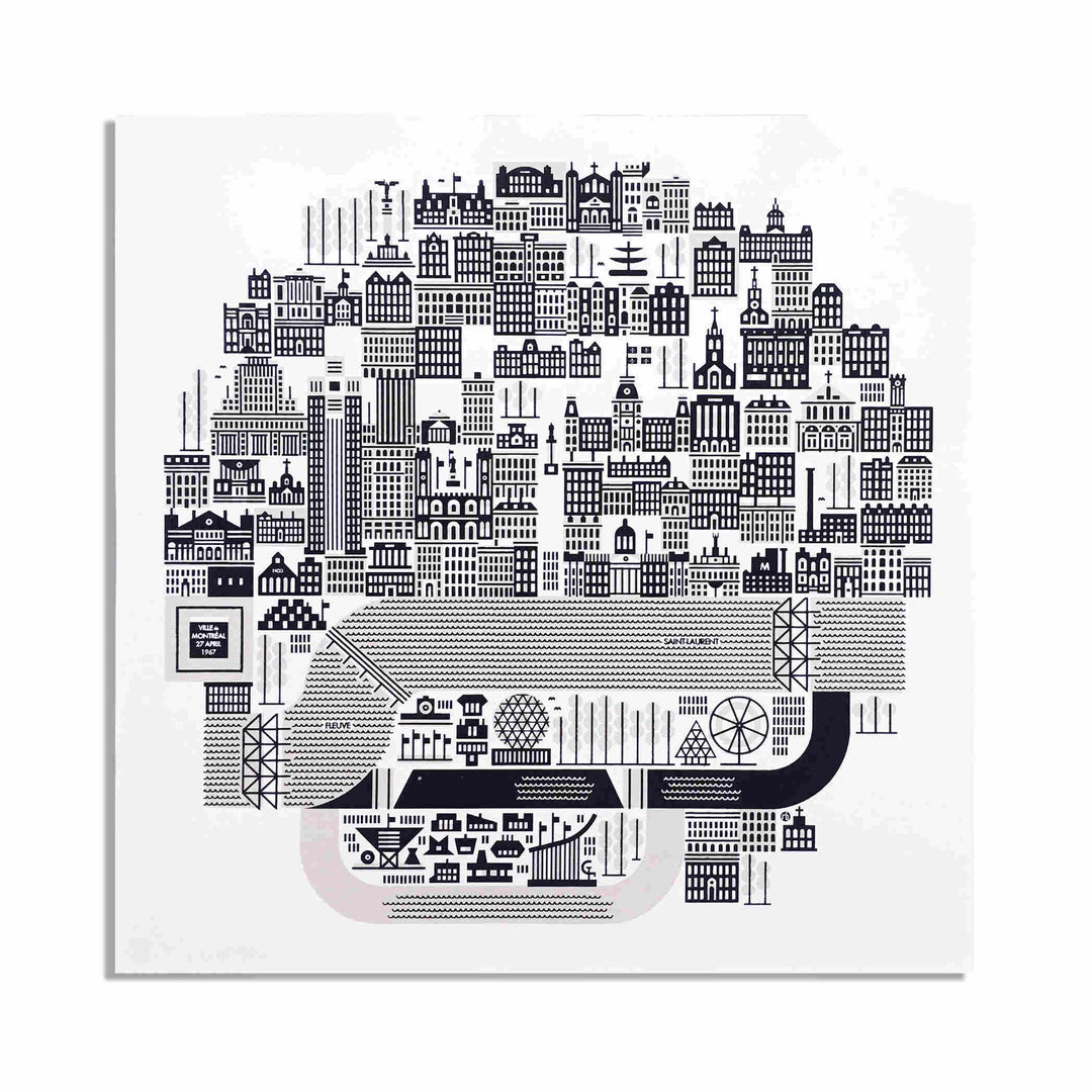 At the heart of this series are modern maps, representations that reveal the unique urban planning of each city. Among them, Montreal and Edmonton stand as symbols of pride, the first for having welcomed the artist and the second for having been the cradle of his talent. But the series goes beyond these two iconic cities, it also embraces eight other Canadian cities, each with its own story to share, its own charm to reveal.