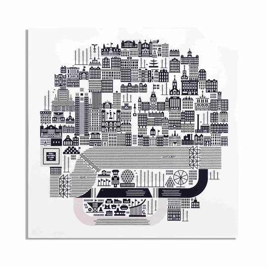 Raymond Biesinger, the visionary artist behind this remarkable series of illustrations, drew his inspiration from the depths of Canada's architectural history. What began as just a humble attempt to capture the soul of these cities quickly evolved into a collection of ten pieces, each capturing with remarkable precision a significant moment in Canadian urban history.