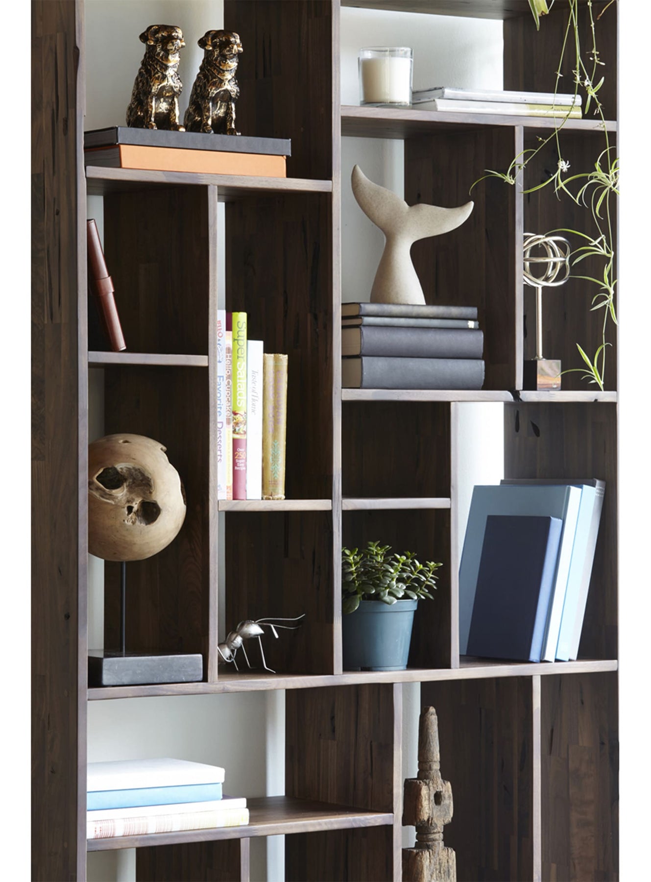 The Redemption bookcases by Moe's Home embodies an innovative and responsible approach to craftsmanship. Crafted from many small pieces of hard walnut, it gives new life to wood fragments that would otherwise have been discarded. Each element is carefully selected and assembled with remarkable precision, resulting in a unique structure that is both aesthetically pleasing and durable.