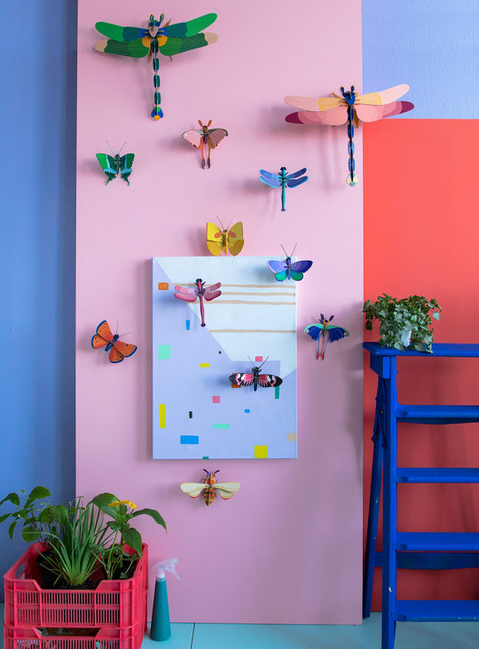 Made from recycled cardboard and printed with vegetable-based inks, this butterfly reflects Studio Roof's strong commitment to sustainability and respect for the environment. Its beautiful blue hues and delicate graphic patterns make the butterfly a visually striking addition to any room, transforming a simple wall into a true work of art.