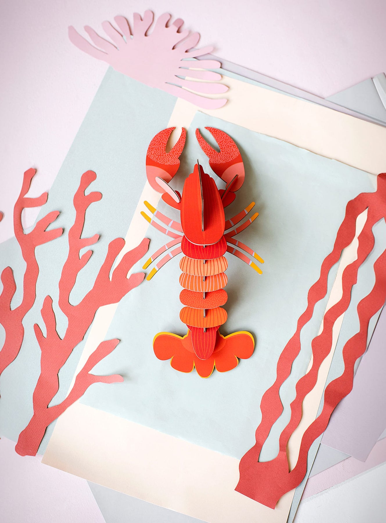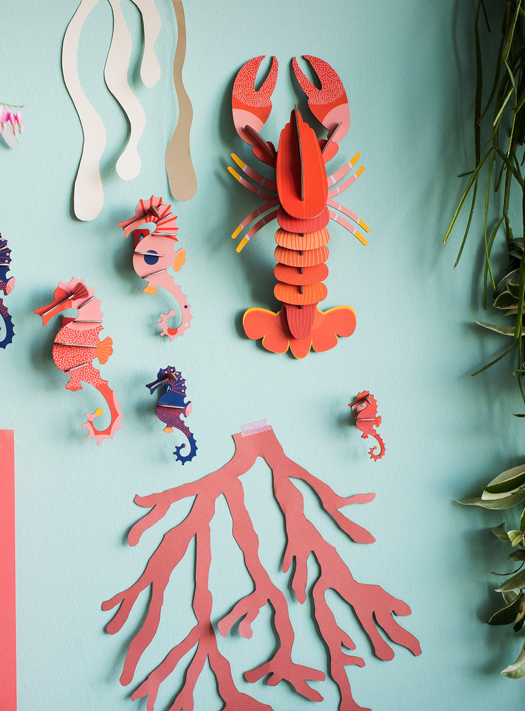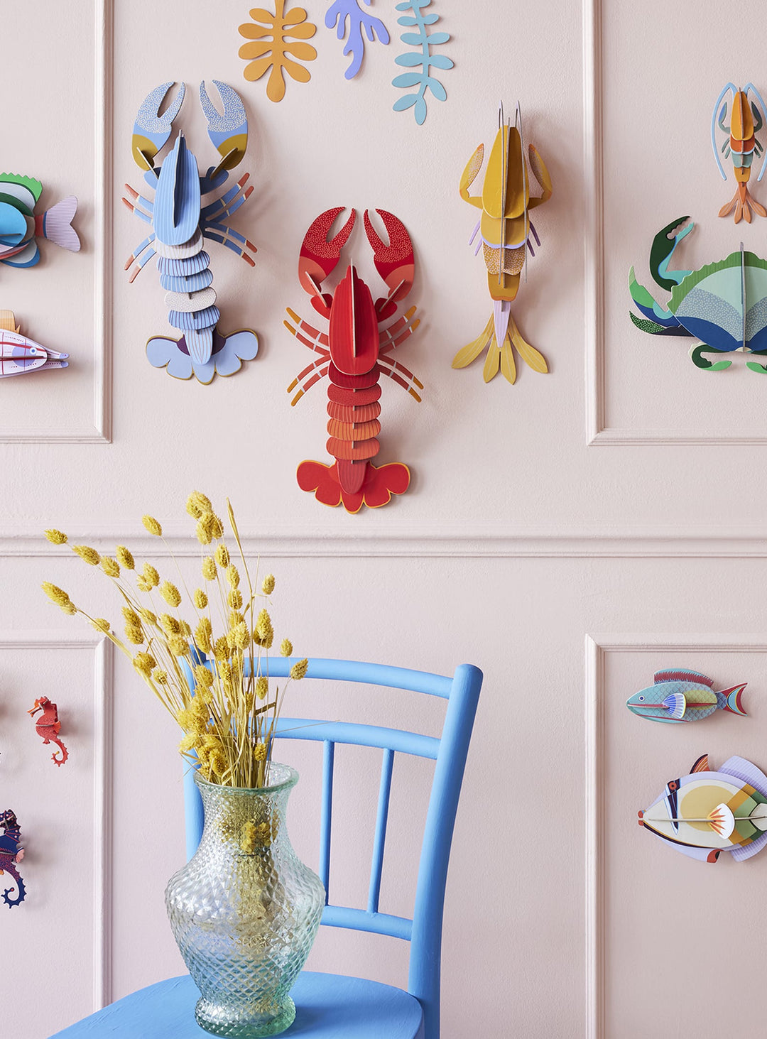 Homard de Studio Roof : une décoration en 3D en carton recyclé pour un intérieur inspiré de la nature marine.