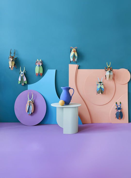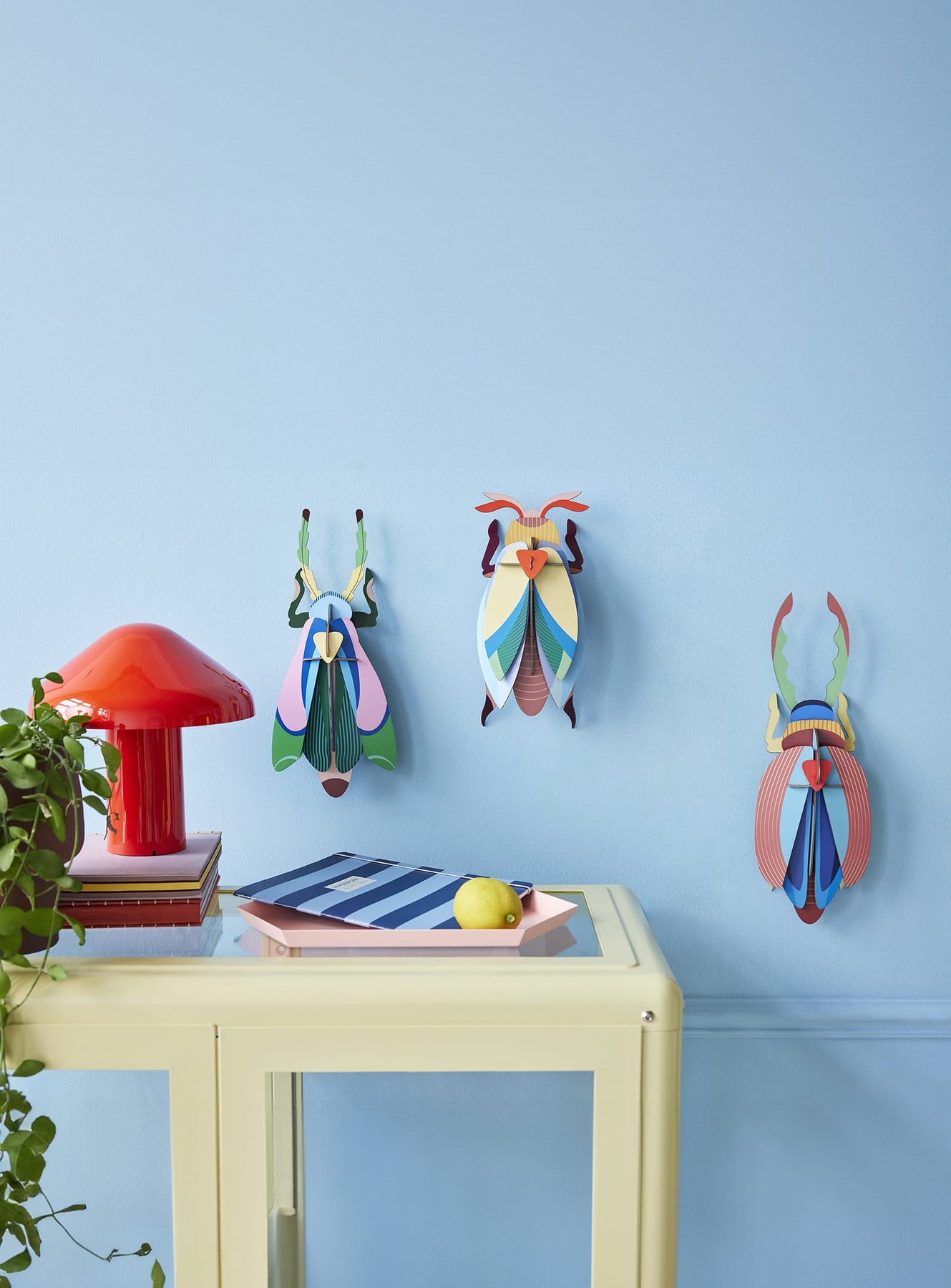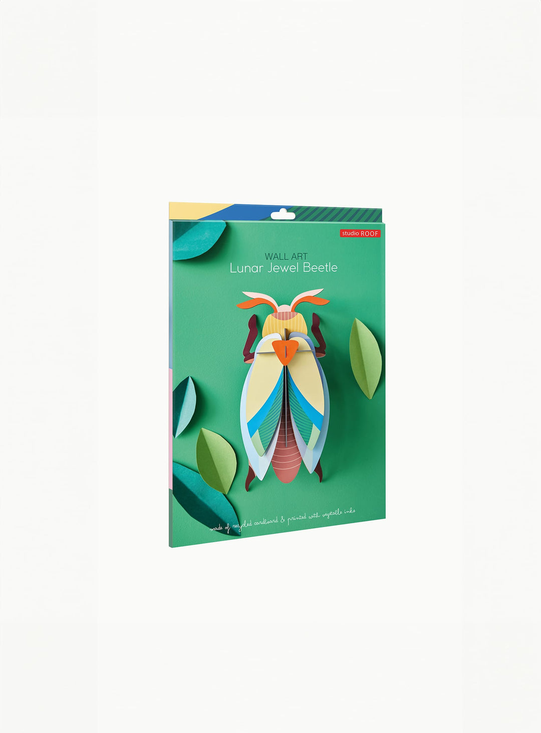 Le Scarabée lune 3D de Studio Roof : une décoration murale éclatante et respectueuse de l'environnement, en carton recyclé.