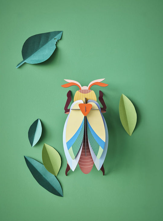 Apportez une touche artistique avec le Scarabée lune 3D de Studio Roof, une œuvre en carton recyclé, inspirée par la nature.