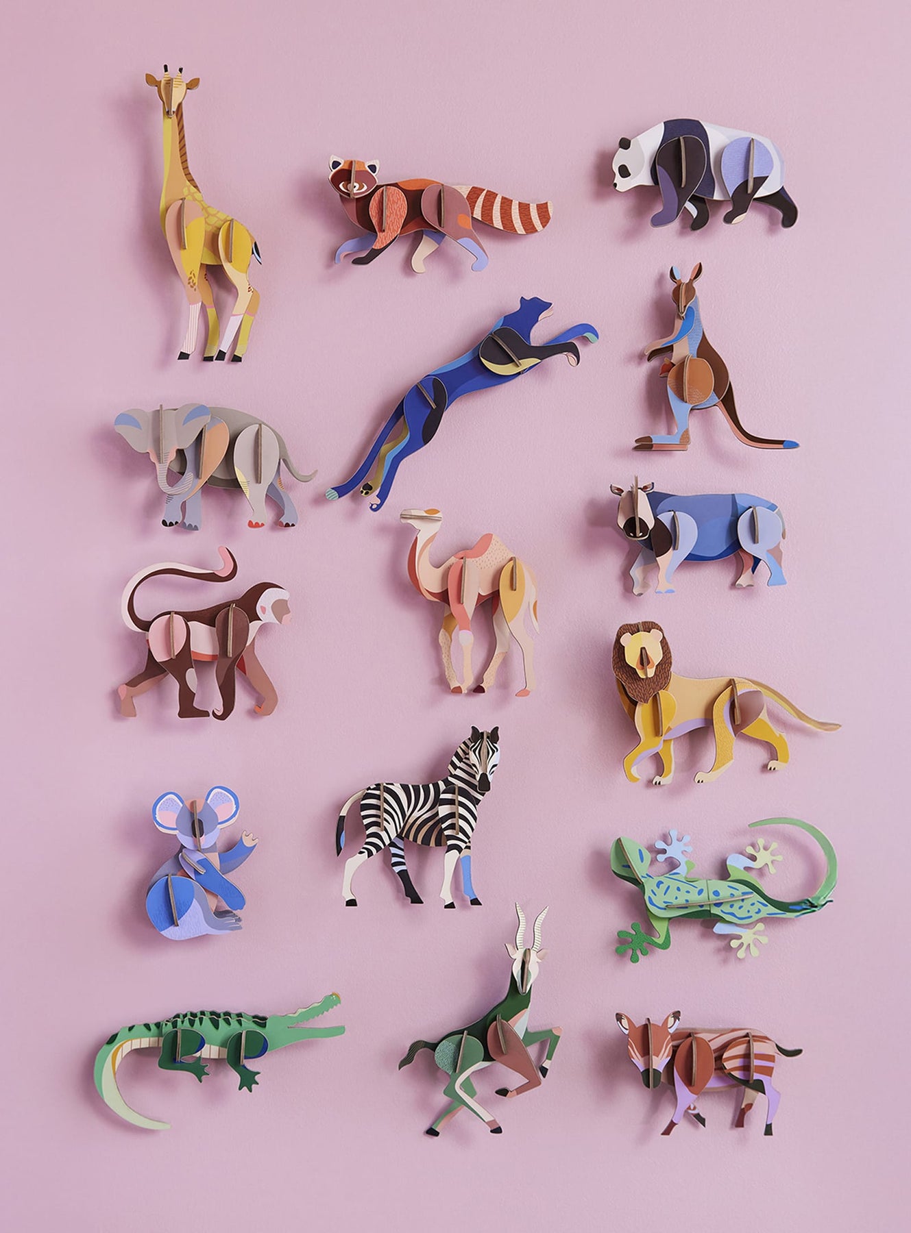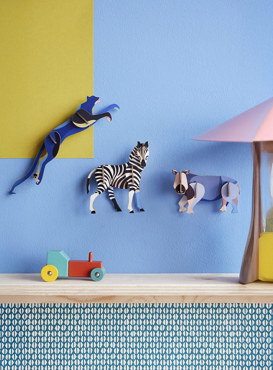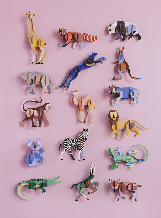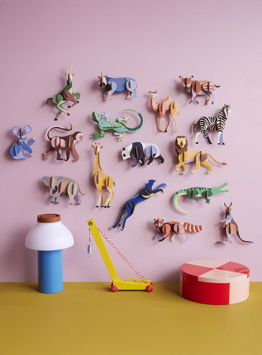 Studio Roof's panther brings the strength and grace of the wild into children's worlds, coming to life as a 3D cardboard wall decoration. It's more than just an object: it invites escape, stimulates the imagination, and awakens the curiosity of children and adults alike. Easy to handle thanks to its design designed for small hands, it assembles like a toy, transforming installation into a creative and fun activity.