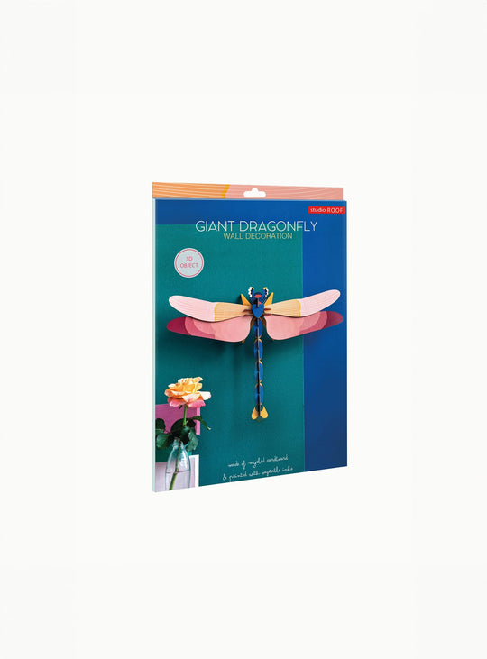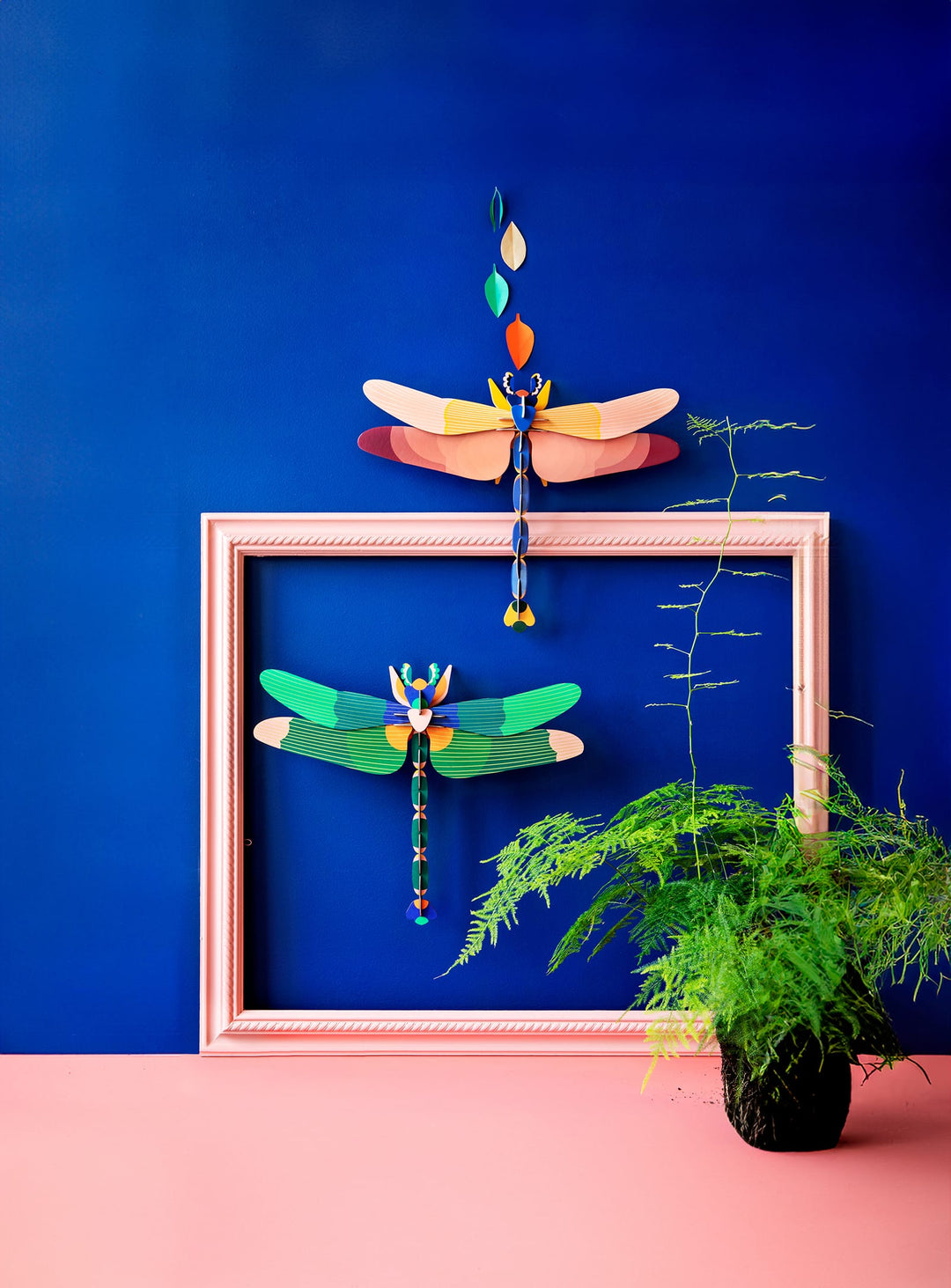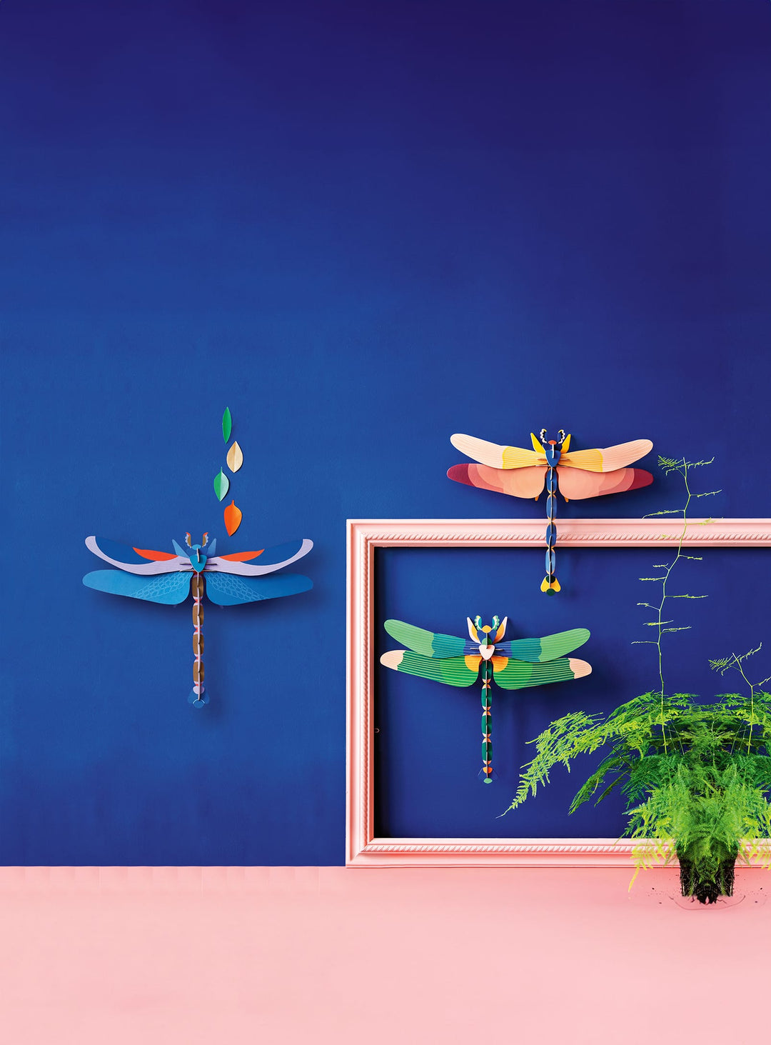 Studio Roof : Libellule rose en 3D, une décoration en carton recyclé pour un intérieur élégant et écoresponsable.