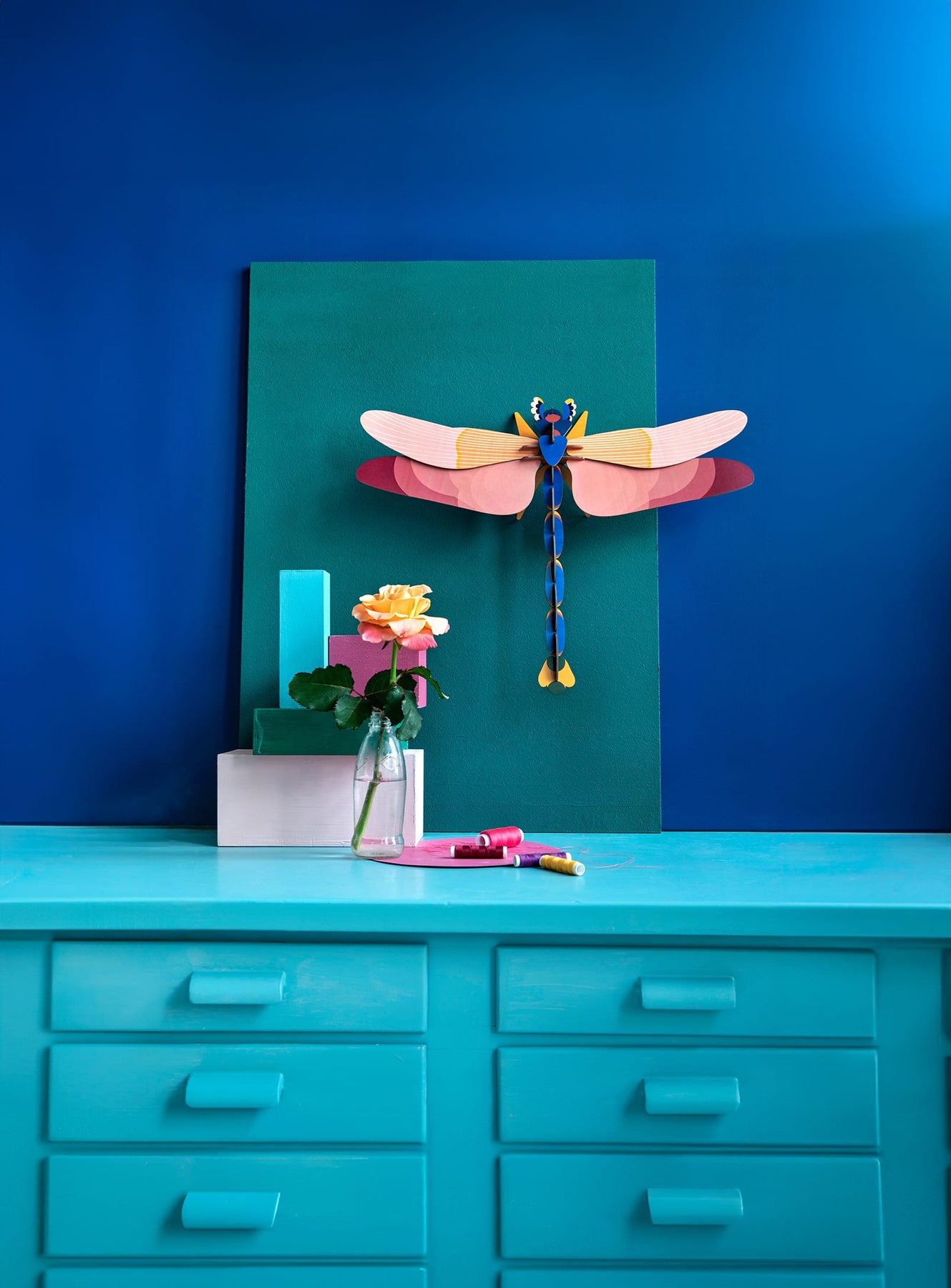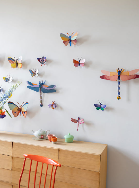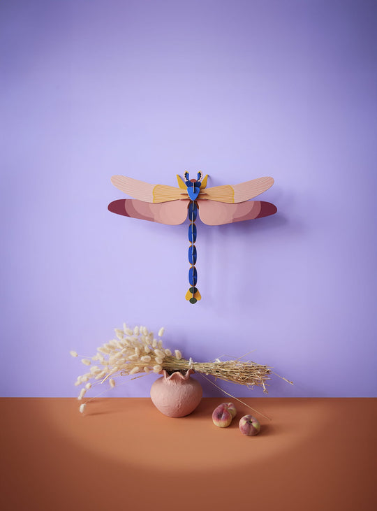 Libellule rose de Studio Roof : un art mural 3D, écologique et féerique, inspiré par la légèreté de la nature.