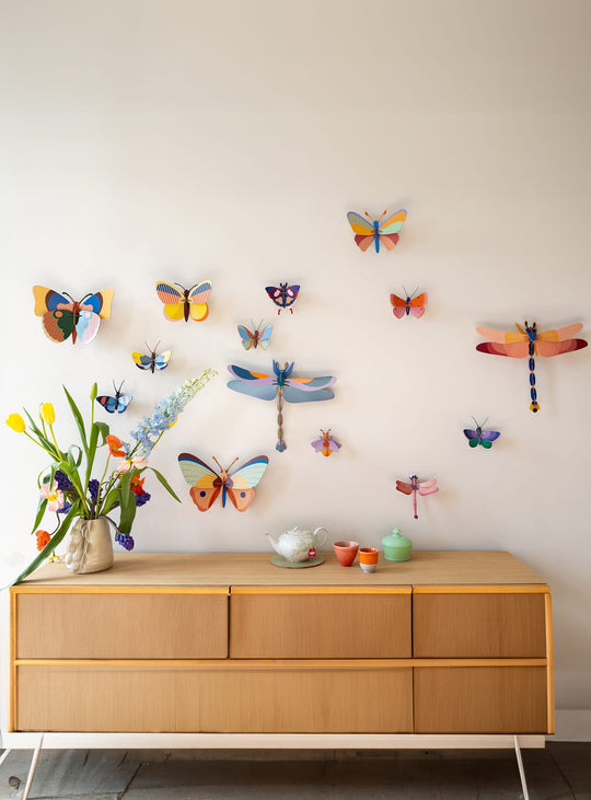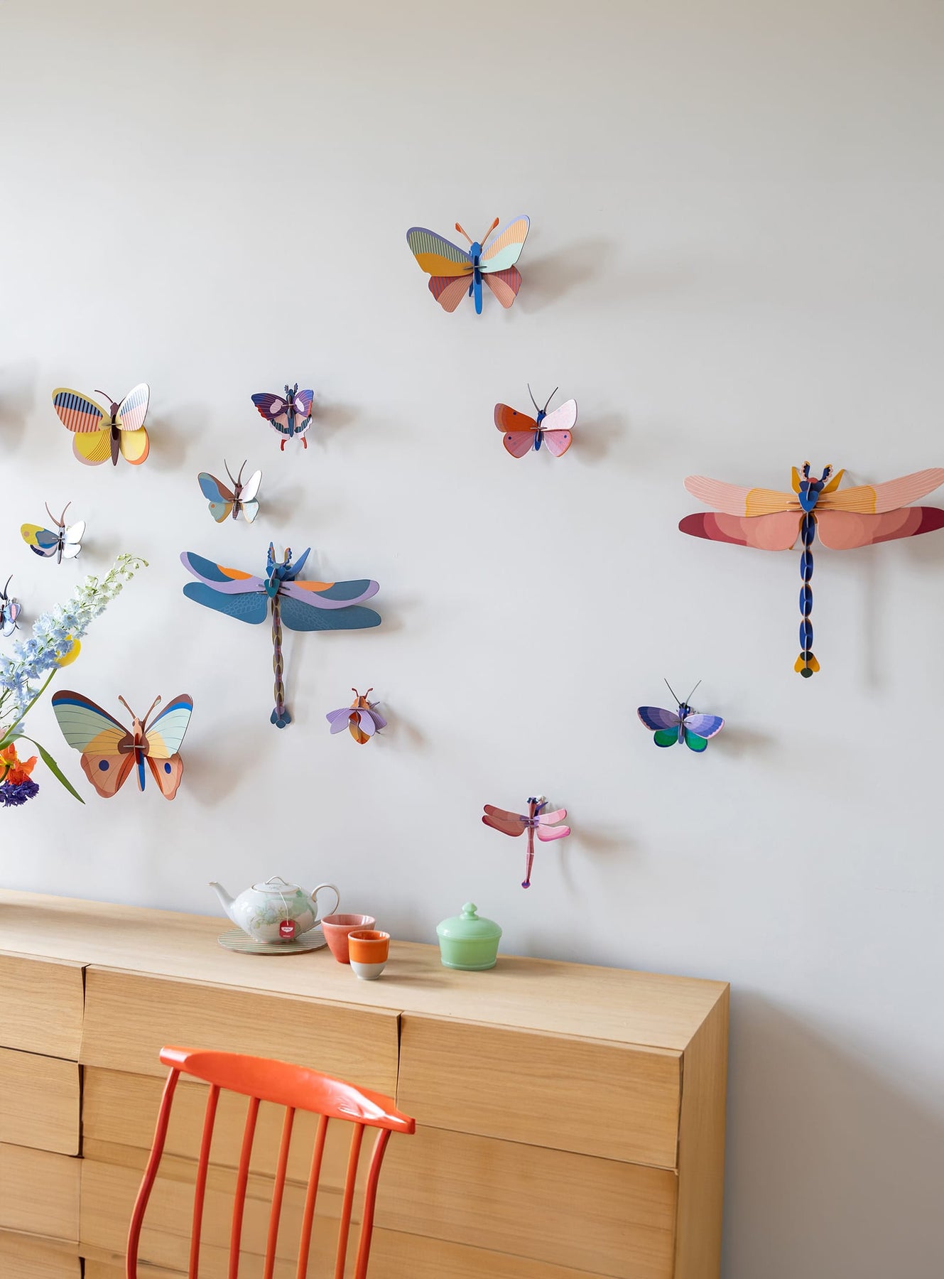 La Libellule rose de Studio Roof : un art mural 3D en carton recyclé, alliant grâce et respect de l’environnement.