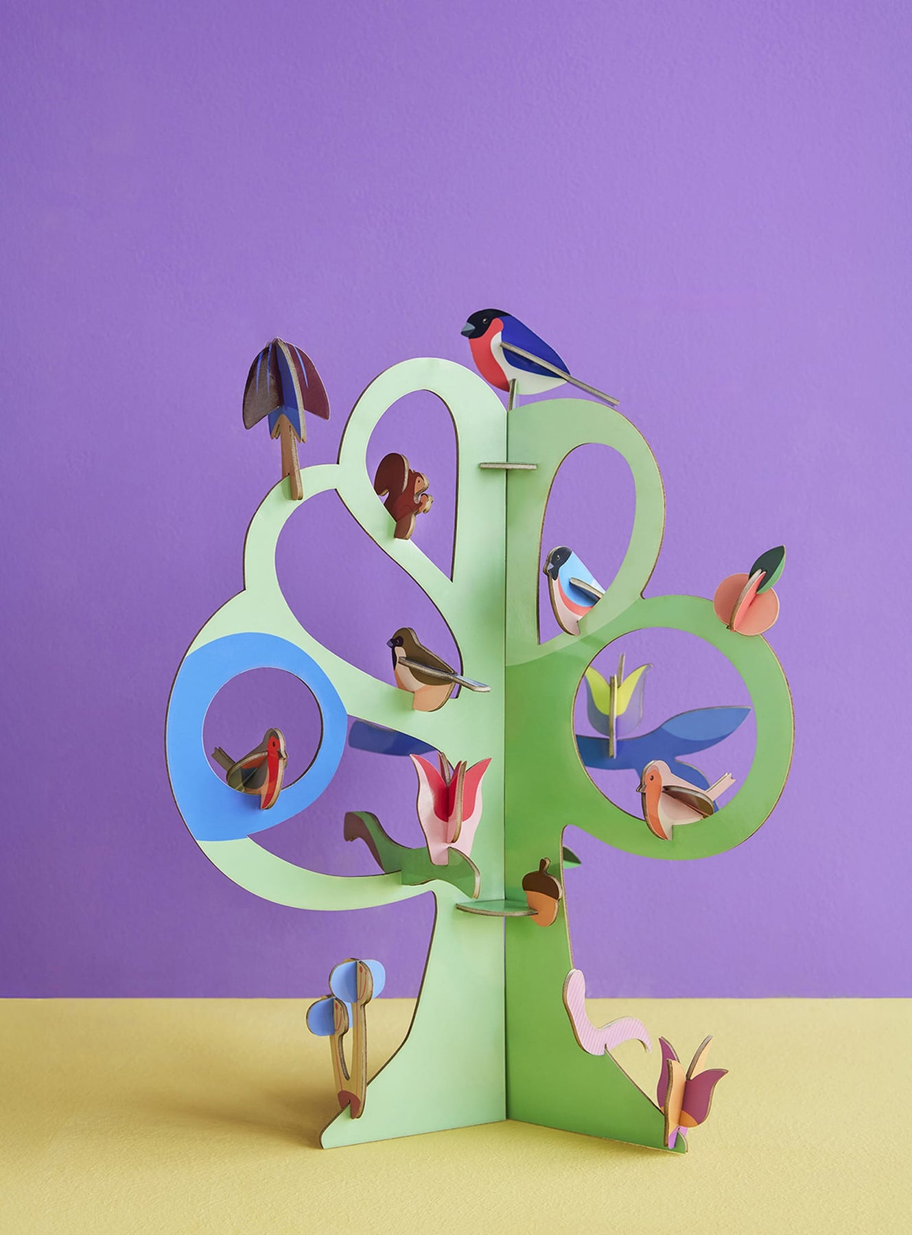 Each meticulously designed element tells a story. You can move the birds around to create your own scenes, reinvent the decor, and create a small, vibrant nature theater. This tree becomes an interactive object that stimulates creativity in both children and adults.