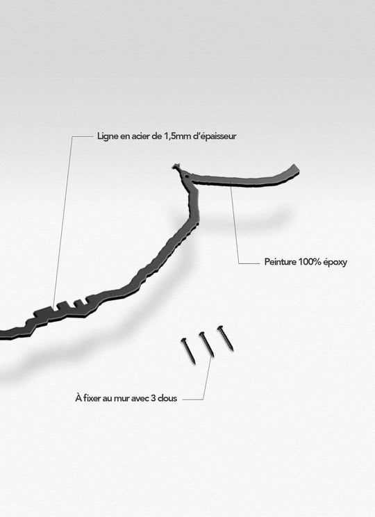 The story begins in Marseille, with a photo taken aboard a sailboat. The sun was rising, and the backlit shot revealed a raw panorama. The whole city was recognizable. Antoine, the founder of The Line who was a cabinetmaker, then had the idea of reproducing this relief in a laser-cut metal line instead of framing the photo and hanging it on the wall. The Line brand was born.