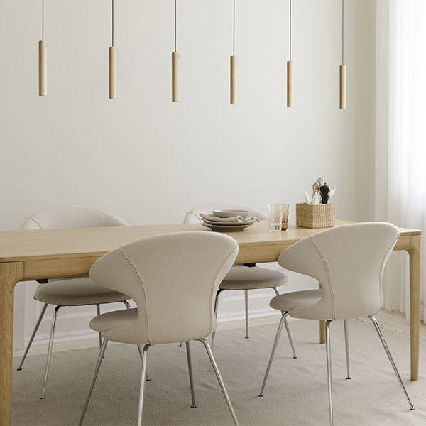 Meet Komorebi, the new flexible lampshade from the Umage collection, celebrating the purity of Japanese style. Inspired by the Japanese word for sunlight filtering through leaves, Komorebi captures a natural and calming ambiance. Crafted with wooden slats paired with delicate textile, this unique lampshade combines warmth and softness to transform your interior into a space that is both comforting and inspiring. Perfect for creating a harmonious atmosphere, Komorebi embodies the balance between contemporary design and serenity.