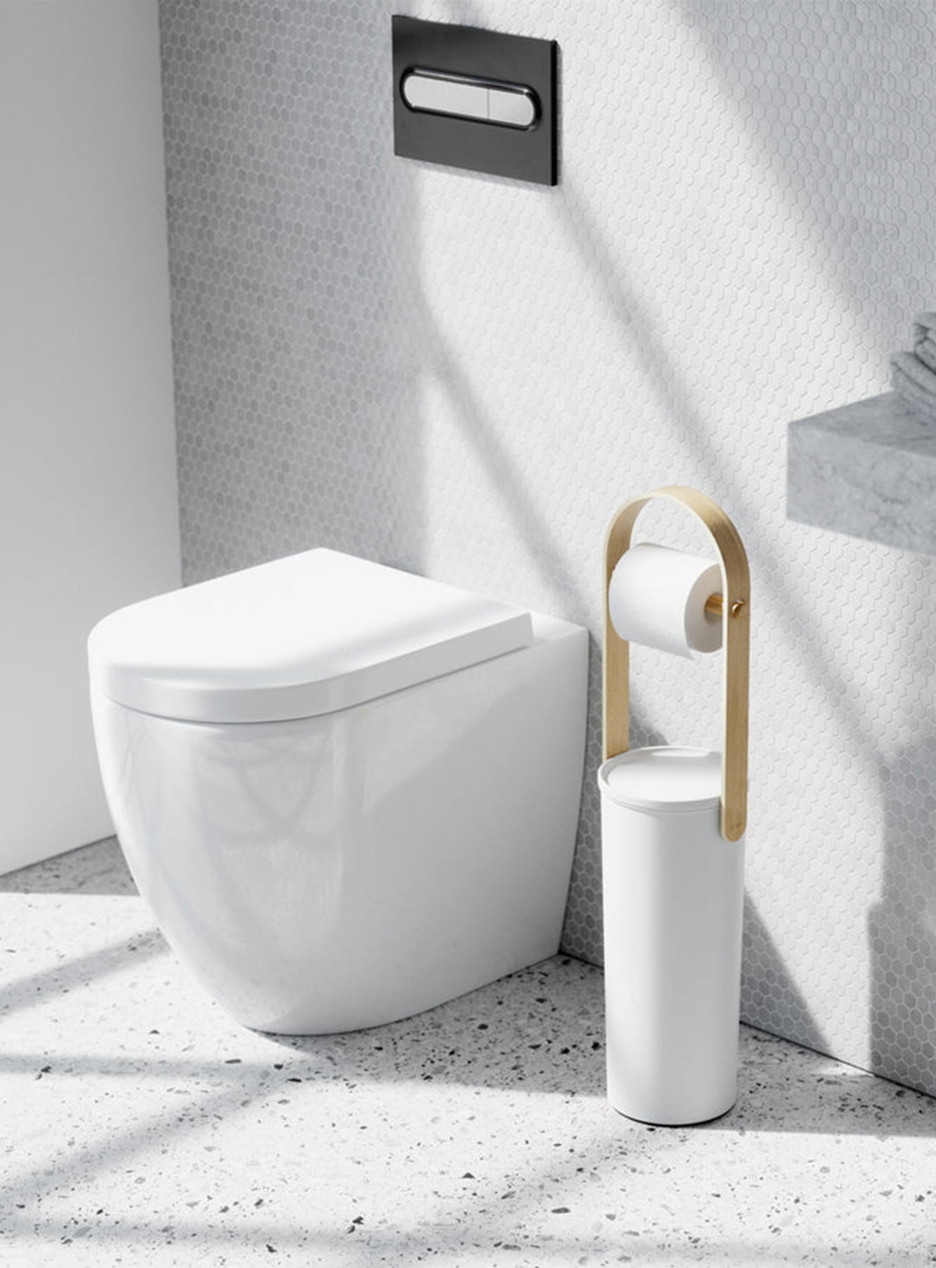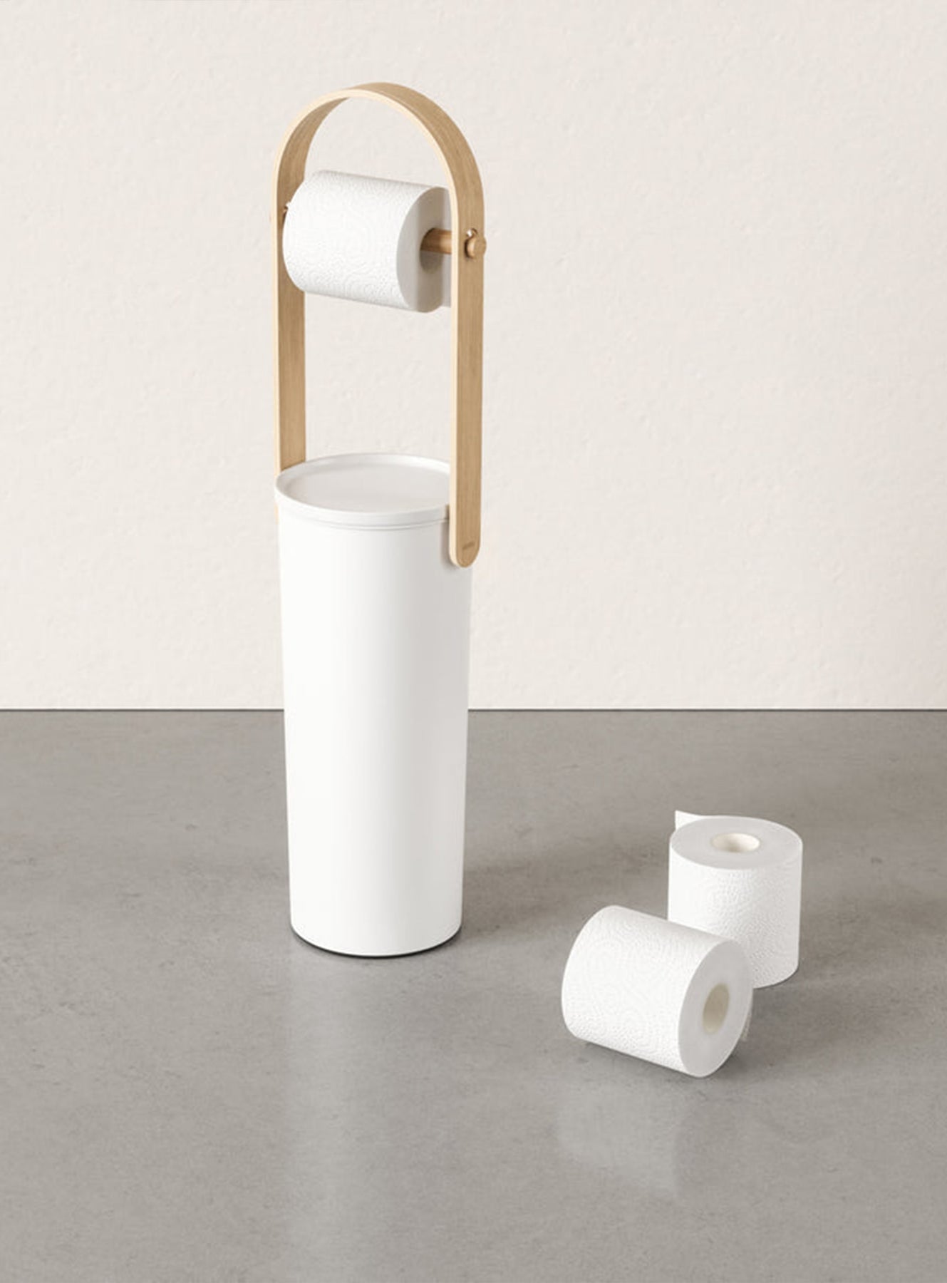 Designed using a combination of renewable wood and recycled plastic, the Bellwood holder is environmentally friendly, yet strong and durable. Its clever design provides ample space for up to three standard or jumbo toilet paper rolls, ensuring you never run out.