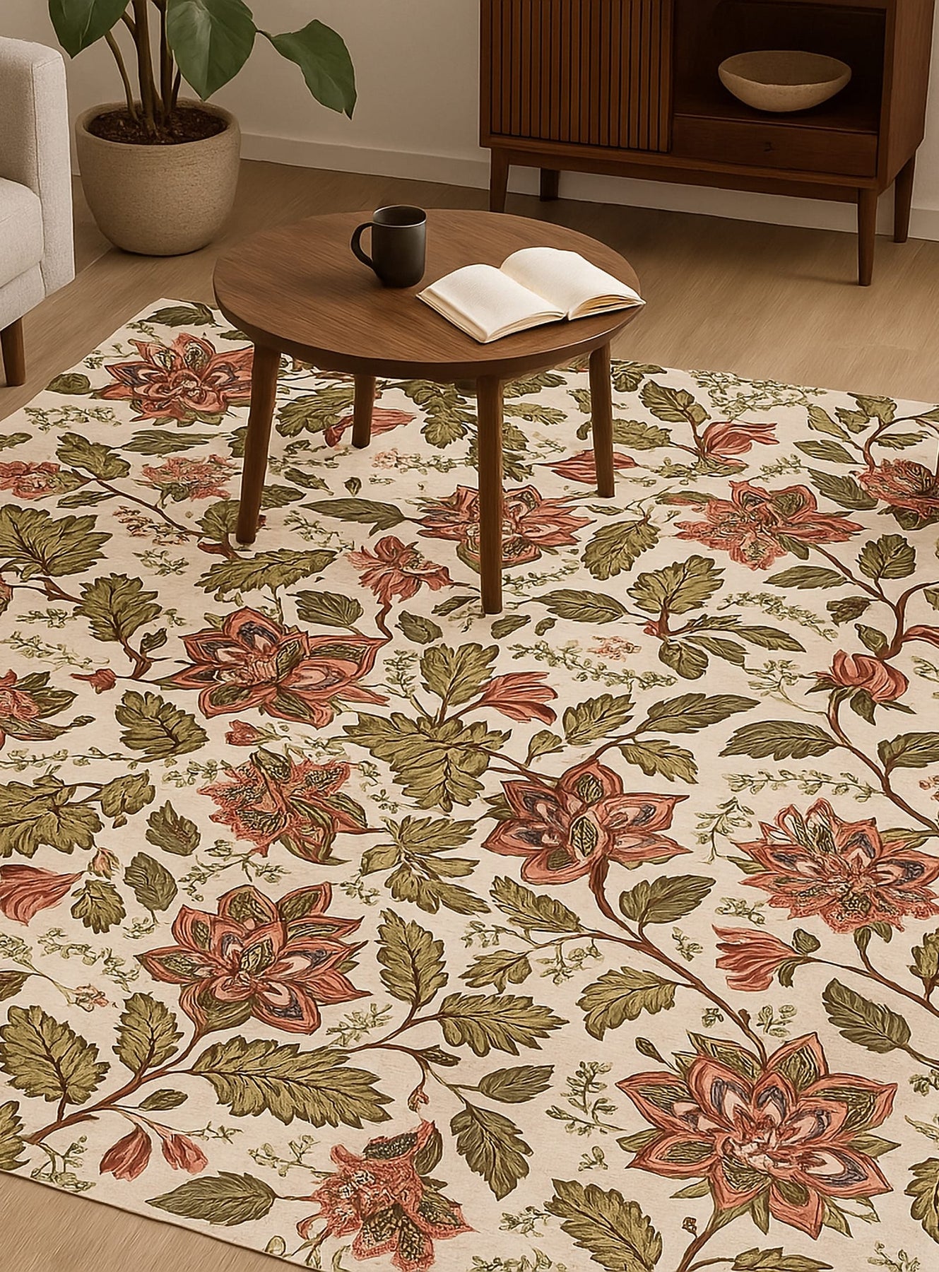 Tapis en vinyle Adama Alma Jacobean, faciles à nettoyer et adaptés aux foyers actifs. vert