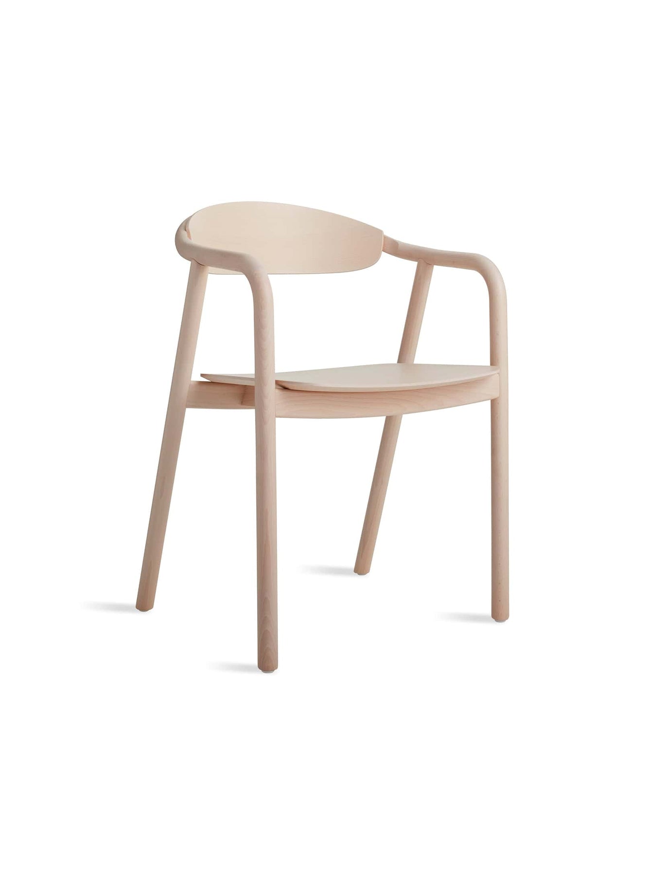 La chaise à dîner Dibs de Blu Dot séduit par sa silhouette fluide et contemporaine, entièrement façonnée en bois de hêtre. Sa conception repose sur la technique du cintrage à la vapeur, qui permet de créer des lignes arrondies et harmonieuses, donnant à l’ensemble une allure légère et raffinée. Le dossier incurvé enveloppe subtilement le dos, offrant un soutien naturel et confortable, tandis que les accoudoirs intégrés prolongent le mouvement des pieds avant pour une continuité visuelle impeccable.