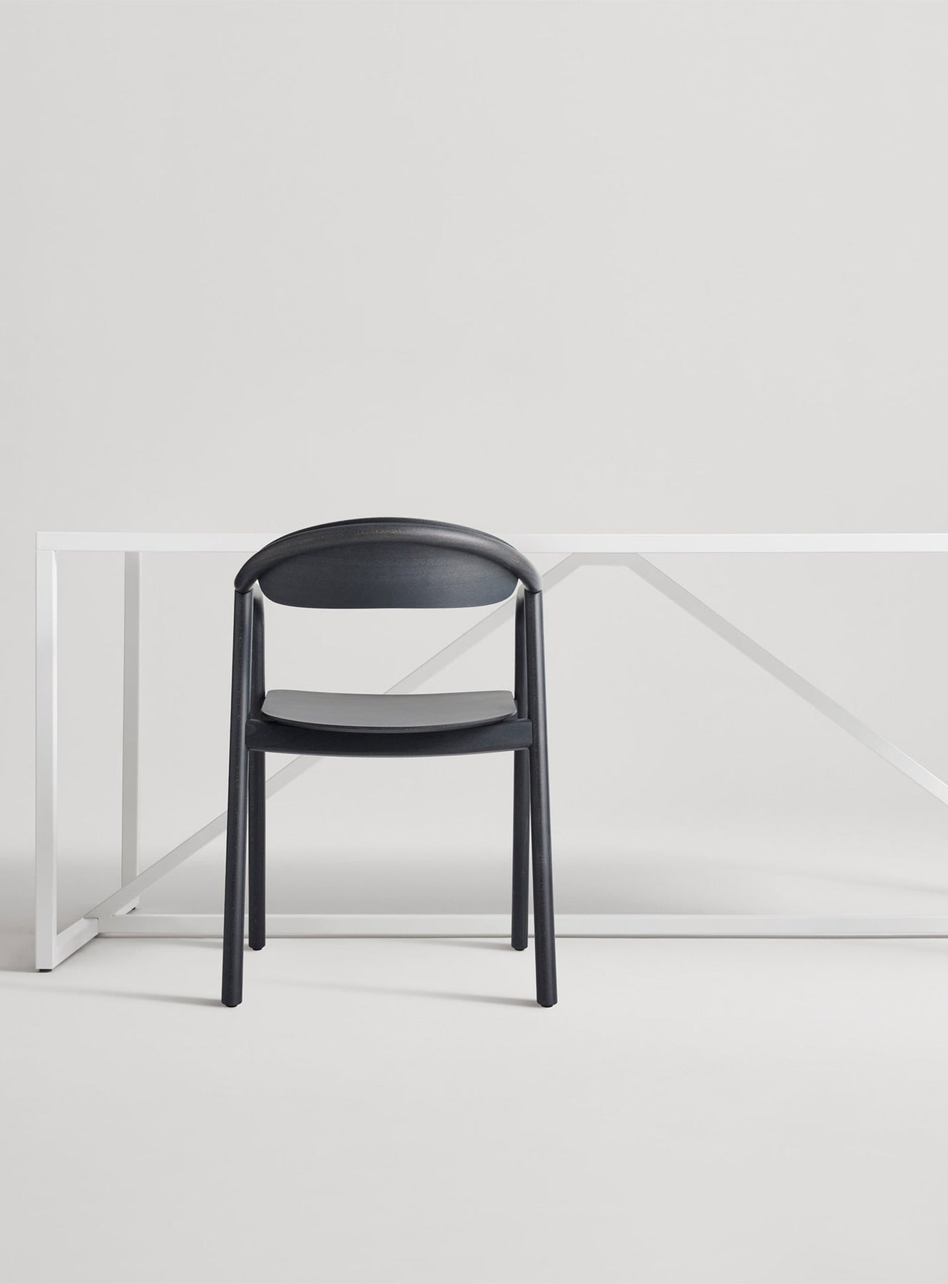 La chaise à dîner Dibs de Blu Dot allie robustesse et douceur des lignes. Noir.