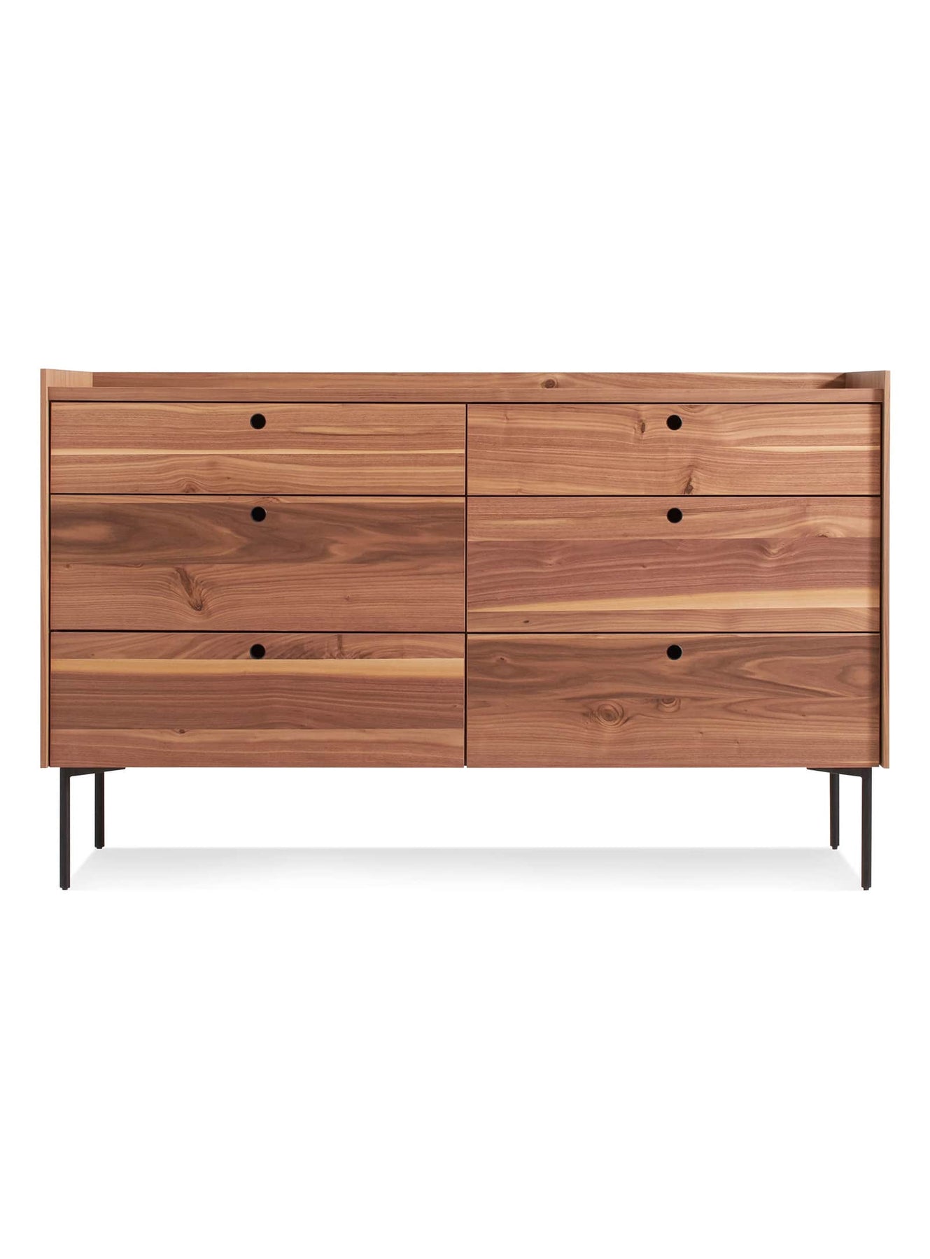 Commode Peek Blu Dot à six tiroirs, rangement généreux et design contemporain. noyer
