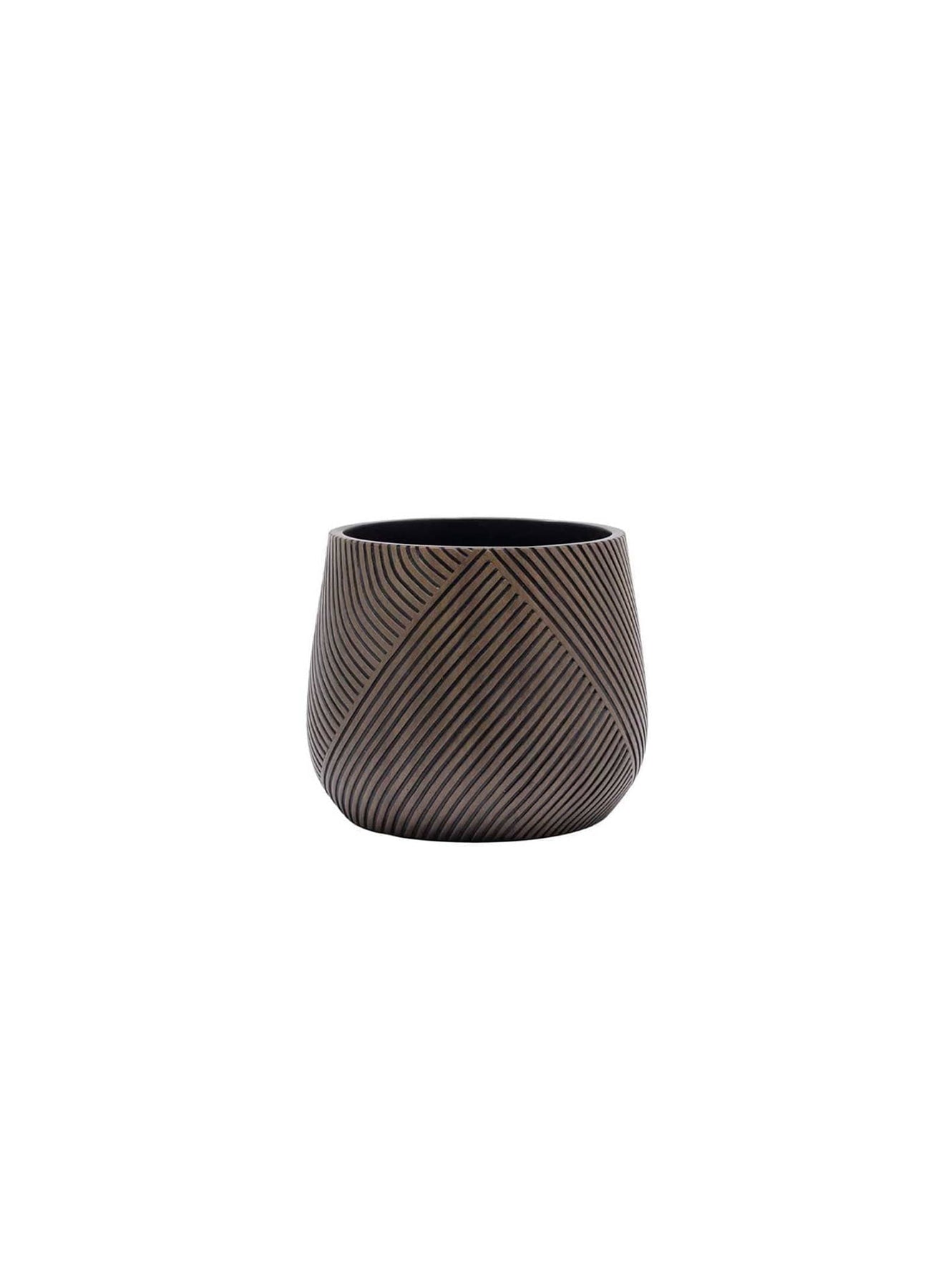 Le cache-pot en résine Meridian offre une manière élégante de mettre en valeur vos plantes et de compléter votre décoration intérieure avec style. Son motif linéaire sculpté ajoute une dimension artistique, mis en valeur par une riche patine qui apporte une touche de sophistication.