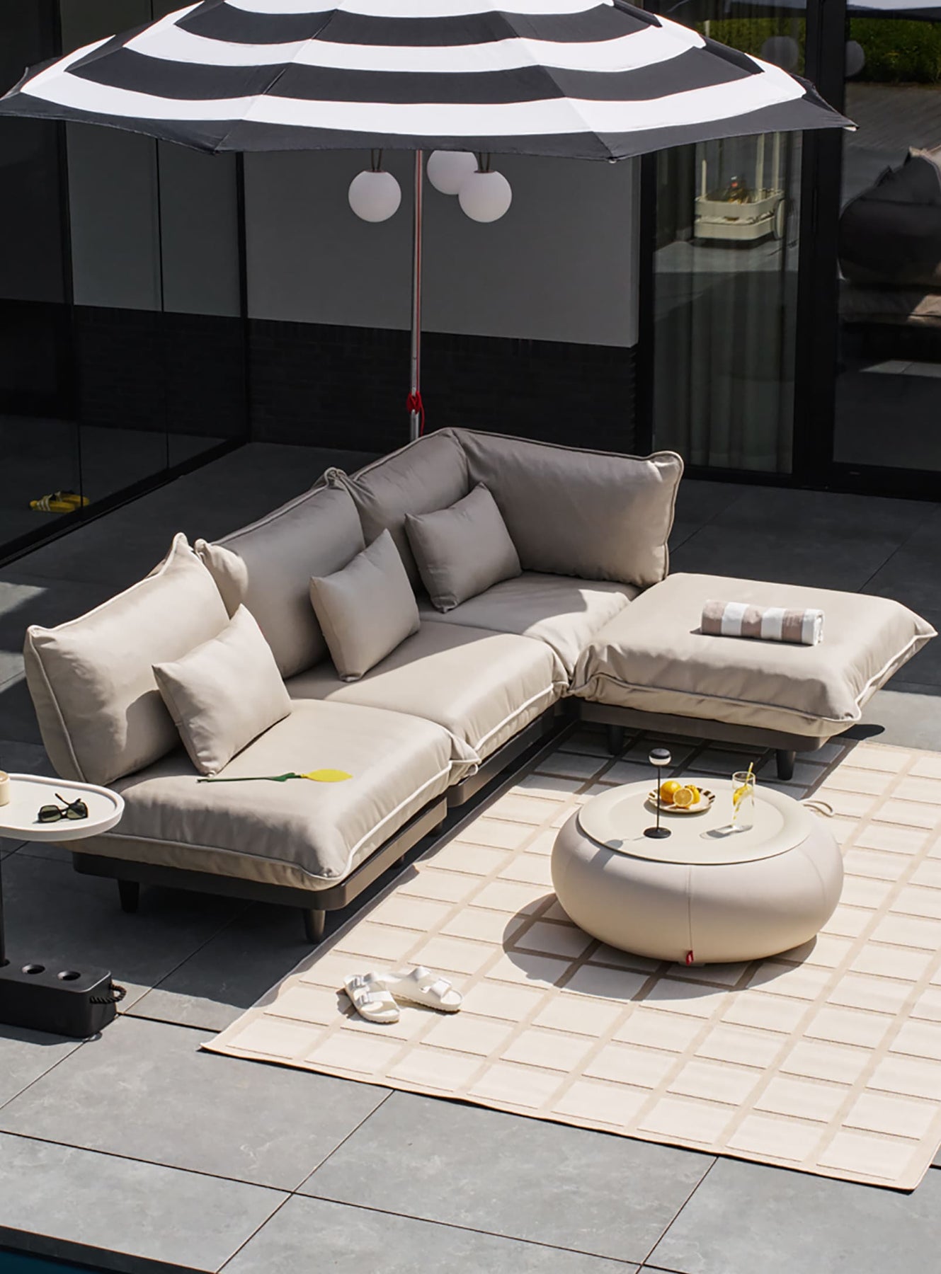 Profitez du grand air avec le sectionnel Paletti Fatboy : modulable, facile à entretenir et résistant à l’eau, idéal pour le climat canadien.