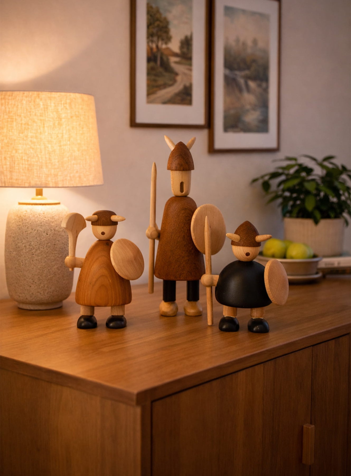 Merci infiniment pour ce superbe retour ! Nous sommes ravis que votre Famille Vikings ait trouvé une place de choix chez vous. Leur fabrication en bois massif et le soin apporté aux détails en font effectivement des pièces uniques. Merci d’avoir souligné la qualité des finitions.