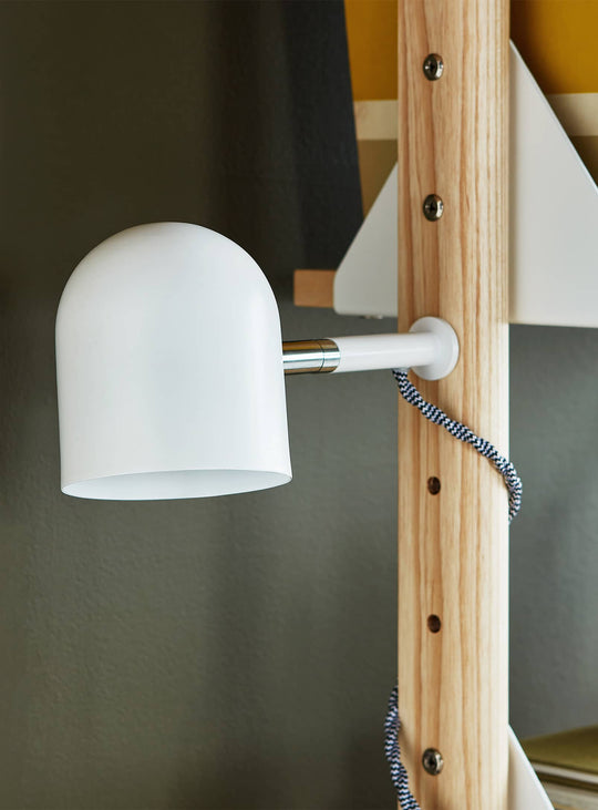 Parfaitement adaptée à la vie moderne, cette lampe d’appoint combine fonctionnalité et design sans effort. Son cadre métallique raffiné se fixe directement aux montants du système d'organisation Branch, libérant ainsi de l’espace tout en offrant un éclairage ciblé. Grâce à sa capacité à pivoter et s’incliner, elle met en valeur ce qui compte le plus, qu'il s'agisse de votre espace de travail, d’un coin lecture ou d’une œuvre d’art à sublimer.