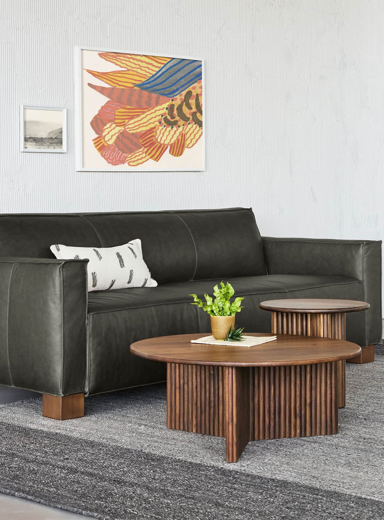 Confort et allure raffinée s’unissent dans le sofa Cabot de Gus* Modern. Cuir tucson char
