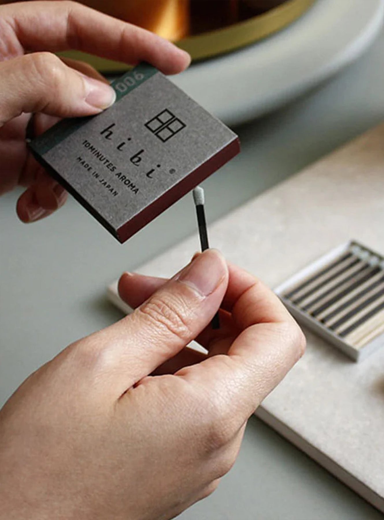 Chaque boîte d'Hibi renferme huit bâtons d'encens d'une qualité exceptionnelle, résultat de la fusion entre l'encens de l'île d'Awaji et les allumettes de Harima. Ce mariage harmonieux donne naissance à une création novatrice, où chaque bâton d'encens prend la forme d'une allumette. L'allumage, semblable à celui d'une allumette ordinaire, déclenche la diffusion de fragrances exquises qui embaument l'air pendant jusqu'à 10 minutes.