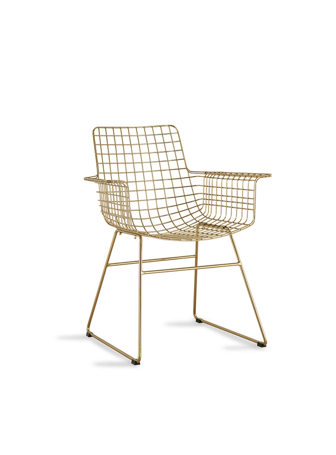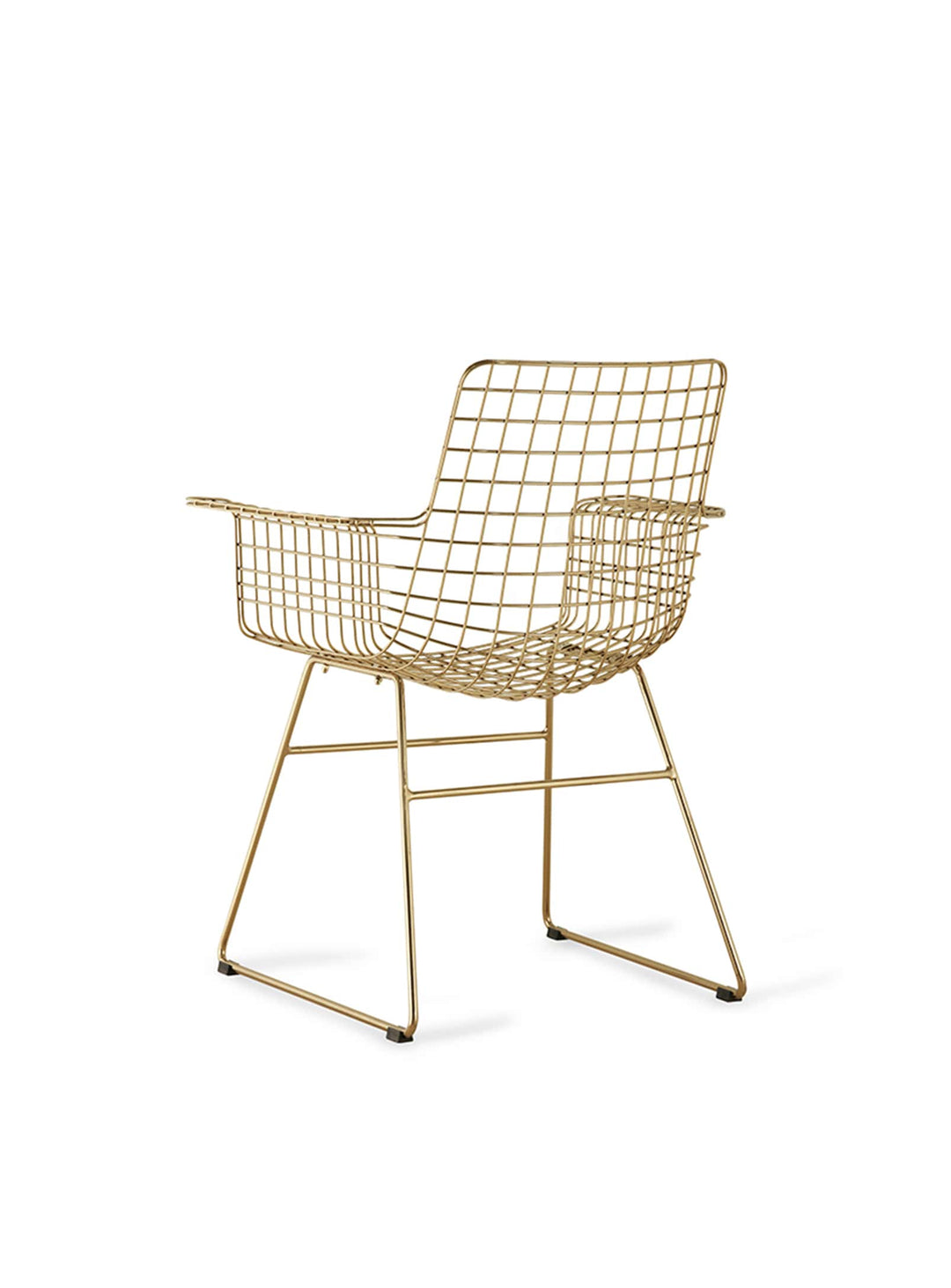 Design filaire, chaise avec accoudoirs élégants et finitions variées : Wire HKliving. Laiton.