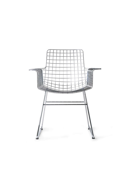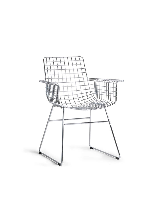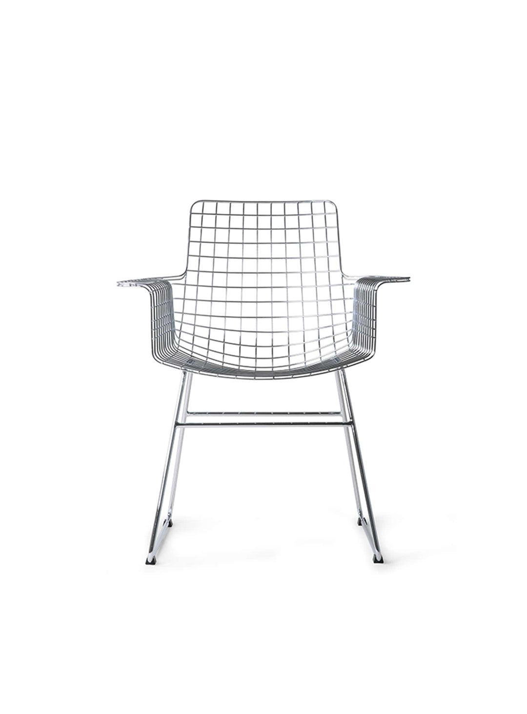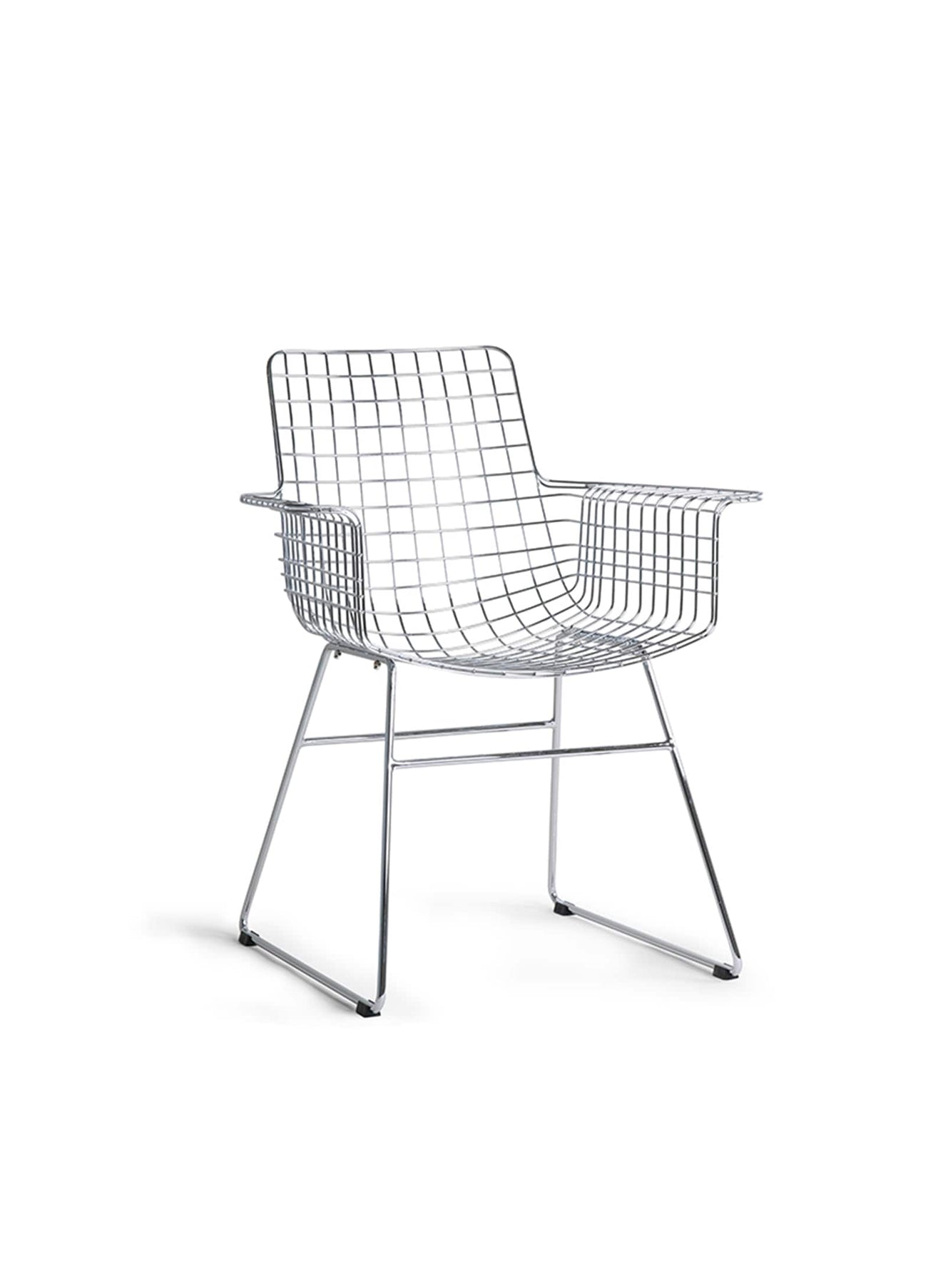 Wire de HKliving : une chaise avec accoudoirs en fil métallique. Chrome